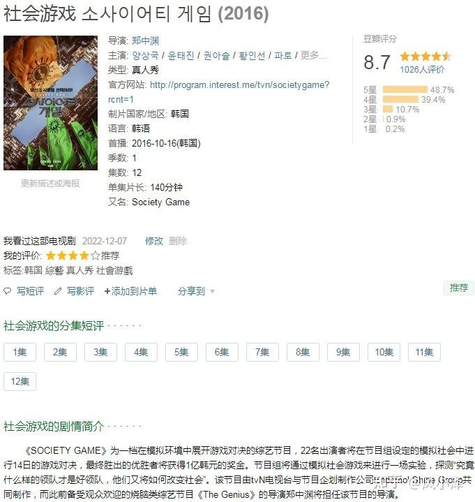 其实这种类型在国内还是算非常小众的作品,相比起来,还是刑侦和本格推理类型的柯南和金田一更受欢迎,甚至可以说不在一个量级。 相关类型题材(尤其如书籍、电影、游戏)众多,不可能也不会完全收录,只发布自己了解或筛选的一些部分。 作品按时间排序。 作品名格式为:中文名 英文名 原文名 类型 出品国家 原著/备注/出品方 的顺序。 为什么我的强迫症让外语作品非得找到英文翻译名。。 若有任何建议欢迎评论。个人纯手工整理,拒绝洗稿抄袭! 文章内部分作品附带在线观看链接有时效性,若打开无法观看请自行搜索相关资源。 @雅皮塞口: 更多的我认为是这些作品放大了人在绝处逢生下展现出来的“真实一面”,也就是强烈刻画的人性。风小泽:赌博默示录系列-智斗、推理、博弈动漫游戏电影综艺推荐专题风小泽:死亡笔记系列-智斗、推理、博弈动漫游戏电影综艺推荐专题风小泽:欺诈游戏/诈欺游戏系列-智斗、推理、博弈动漫游戏电影综艺推荐专题风小泽:弥留之国的爱丽丝/今际之国的闯关者系列-智斗、推理、博弈动漫游戏电影综艺推荐专题风小泽:端脑系列-智斗、推理、博弈动漫游戏电影综艺推荐专题风小泽:朋友游戏系列-智斗、推理、博弈动漫游戏电影综艺推荐专题风小泽:游戏的法则系列-智斗、推理、博弈动漫游戏电影综艺推荐专题风小泽:鱿鱼游戏系列-智斗、推理、博弈动漫游戏电影综艺推荐专题风小泽:密室逃脱/大逃脱系列-智斗、推理、博弈动漫游戏电影综艺推荐专题风小泽:杀人游戏/狼人杀/语言推理系列-智斗、推理、博弈动漫游戏电影综艺推荐专题谋杀之谜/剧本杀系列-智斗、推理、博弈动漫游戏电影综艺推荐专题风小泽:全员逃走中/全员加速中/追逐系列-智斗、推理、博弈动漫游戏电影综艺推荐专题风小泽:噬谎者系列-智斗、推理、博弈动漫游戏电影综艺推荐专题风小泽:狂赌之渊系列-智斗、推理、博弈动漫游戏电影综艺推荐专题风小泽:赌博霸王传系列-智斗、推理、博弈动漫游戏电影综艺推荐专题风小泽:要听神明的话/诚如神之所说系列-智斗、推理、博弈动漫游戏电影综艺推荐专题风小泽:达尔文游戏系列-智斗、推理、博弈动漫游戏电影综艺推荐专题 持续更新 2022-12-8风小泽:金钱游戏/争夺游戏系列-智斗、推理、博弈动漫游戏电影综艺推荐专题 算计:七天的死亡游戏 Incite Mill: 7 Days Death Game インシテミル 7日间のデスゲーム 真人电影 日本 10-10-16 中田秀夫 个人评价:7。论游戏,不如saw系列;论残忍,不如大逃杀;论信任度,不如诈欺游戏。不过算还可以看的下去。气氛渲染的还行,可惜感觉作案动机不足。 ![]() 赌国神童 Gamble! ギャンブルッ! 漫画 日本 07-7-18 鹿贺满 ![]() 待更新 我可以 英文名未定 真人秀 中国 23-0-0 严敏(据传) 仿体能之巅。未出。 ![]() ![]() 恶魔计划(暂译名) Devil's Plan 데블스 플랜 真人秀 韩国 预计23-9-0 郑中渊 脑力生存游戏娱乐节目,确定最优秀的大脑。 ![]() 体能之巅:百人大挑战 Physical: 100 피지컬: 100 真人秀 韩国 23-1-24 Jang Ho-gi 个人评价:10。肌肉互搏的生存综艺也能够做得很好看。 ![]() 顶楼游戏 Penthouse 펜트하우스 真人秀 韩国 22-7-12 wavve 网友评价:10。@珊米酱超甜der: 大体上算是近两三年最好的智斗/生存游戏向作品了。设定本身就极其吸睛,再配上功不可没的剪辑和灵魂人物西出口(以及我们小林XD),如此曲折离奇的剧情和多面又富有魅力的一个个人物特质,属于是编剧拍drama都设计不出来的效果。与一年前的血之游戏甚至更早的the genius比,节目设计上几乎没什么特别需要智力的部分。PD仿佛特意把所有冲突推进都放在了人情世故和社会关系的话题上——血淋淋的结盟、双面间谍、投票淘汰etc。而顶楼本身的建筑物特点为所有商讨增加了极大的物理屏障,君不见多少一石激起千层浪的反转皆是在被“凑”到一起的室友间发生的。决赛烂尾了,但瑕不掩瑜。不止本作,所有大逃杀式的生存游戏都是人越多越精彩,总决赛反倒枯燥。在最后一集之前都值得五星评价。 观看链接:B站搜索相关关键词。 ![]() 新世界:虚拟货币争霸战 New World 신세계로부터 真人秀 韩国 21-11-20 个人评价:6。非粉丝,设定不错,但是总体的感觉还没没能坚持看下去。 观看链接:B站搜索相关关键词。 ![]() 血之游戏 Game of Blood 피의 게임 真人秀 韩国 2021-11-1 MBC 个人评价:8。里面比较像SUR+TG,不过个人观感还是挺好的。放送把控的部分还不错,于是很多观众都会与节目中的选手共情。 观看链接:B站搜索相关关键词。 ![]() 社会游戏2 Society Game 2 소사이어티 게임2 真人秀 韩国 17-8-25 郑中渊 个人评价:8。 观看链接:B站搜索相关关键词。 ![]() 社会游戏 Society Game 소사이어티 게임 真人秀 韩国 16-10-16 郑中渊 个人评价:8。比起老大哥那种又多了一些创新和不一样的场景背景设置。素人的表现也都挺好的。 观看链接:B站搜索相关关键词。 ![]() |