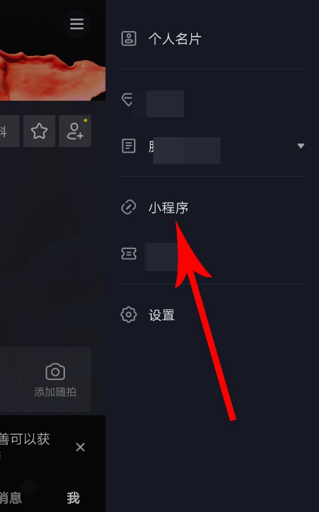 3、打开抖音右侧边栏后,找到其中的“小程序”并点击。
