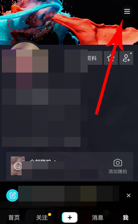 2、进入抖音个人主页,然后点击右上角“三”图标。