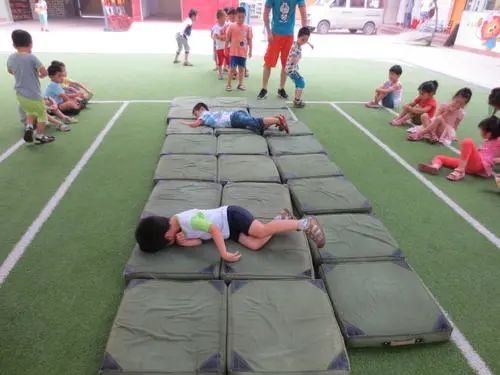 ![]() ![]() ![]() ![]() ![]() Semester reading plan 进/步/使/我/快/乐 ![]() ![]() ![]() ![]() ![]() 2~3岁的亲子游戏 到儿童游乐场玩是2~3岁幼儿最感兴奋的事。无论是溜滑梯、荡秋千、攀爬架、浪板、跷跷板等。 01 独自上下楼梯 训练目的:增进孩子的平衡能力。 训练要求:孩子能一步跨上一个阶梯,连续上或下楼梯。 难度设置: A成人站在孩子前面或后面,伸出双臂或双手的拇指,让孩子抓住拉孩子上楼梯; B成人将左手手臂或拇指抬高,右手手臂或拇指则在孩子右侧腰间的位置,让孩子在搀扶下自己平衡用力上下楼梯; C成人伸出左手手臂或拇指搀扶孩子上、下楼梯; D让孩子独自上、下楼梯。 帮助给予: A双手(或拇指)抬高给予协助; B一手(拇指)高,一手(拇指)低给予协助; C单手(拇指)给予协助; D撤消所有协助。 ![]() 02 分糖果 游戏目的:锻炼孩子精细动作的发展、培养孩子认知和分辨能力 游戏准备:孩子喜欢吃的糖果若干,与糖果大小相似的珠子或球若干。空瓶子一个。 游戏内容:将糖果和珠子混在一起放在一个盘里,鼓励孩子把糖果和珠子区分出来,将糖果(或珠子)用手挑出来放入空瓶子里。挑完后盖上瓶盖,摇晃瓶子。让孩子倾听瓶子里发出的声音。 指导与建议:游戏贯穿2-3岁的孩子。随着孩子认知能力的增加,可以准备3样以上的物品让孩子区分。也可以增加物品的数量,让孩子发展用手指挑拣的精细动作。 ![]() 03 手眼协调训练 游戏目的:锻炼孩子手眼协调动作能力,发展孩子的动作灵活性。 游戏内容: 1、抄写训练。让孩子描写、抄写各种简单的线条、图形、字母、数字等。 2、倒水训练。让孩子学习把水倒入某一容器中,尽量不要把水漏出。 3、扣钮扣。让孩子学习扣按扣、钮扣、爿口等。 指导与建议:游戏贯穿2-3岁的孩子。 ![]() 04 吹风机 游戏目的:发展感知能力,提高本体感觉。 游戏内容:先与孩子巩固对身体部位的认识,再用吹风机的凉风吹这些部位,问孩子的感觉如何?然后按成热风吹,但注意不要灼伤孩子。让孩子讲讲各部位的感受。 指导与建议:游戏贯穿2-3岁的孩子。敏感的孩子通常在脸部和头颈肌肉上吹风时会有强烈的反应,因此不要勉强吹在这些部位。选择吹风机时,热风凉风最好可以随时切换,并观察孩子的感觉。 05 故事接龙 游戏目的:培养孩子记忆能力、想象力、表达能力。 游戏内容: 1、给孩子复述一个耳熟能详的故事,故意在结尾或某一个情节里进行删改,看孩子有什么反应? 2、在故事讲到一半的时候停顿下来,让孩子根据自己的记忆接着讲下去。 3、给孩子看图片、让孩子用自己的语言把图片上的内容表达出来。 4、多给孩子灌输新的词语、诗歌、音乐等内容,让孩子越来越多的接触语言的内容。 指导与建议:游戏贯穿2-3岁的孩子。 ![]() ![]() 3~4的亲子游戏 幼儿的身高快速成长,跳跃运动十分重要,也对提高本体动觉帮助良多。 06 扔球 训练目的:手臂运动能力/手眼协调能力 训练要求:把一个小型球或豆球扔到3米远的地方。 帮助给予: 1.开始时如果孩子不领会扔球的动作,可手把手地教; 2.给孩子在前方画一条线来提示他/她要扔的距离; 3.为鼓励孩子尝试,可在线的旁边放一玩具或小食品来作为奖励物; ![]() 07 互动式投篮 训练目的:手臂运动能力/手眼协调能力,增进与人互动的能力 训练要求:家长及孩子轮流投篮;家长投完后把球捡起来给孩子投。 难度设置:适当增大距离。 帮助给予:多给予孩子鼓励。 ![]() 08 个性跳绳 训练目的:身体平衡能力。 训练要求:绳子的两端分别固定在柱子或椅子上离地15CM高,让孩子双脚轮流抬高跨过绳子。 帮助给予: 1.用姿势示意孩子如何抬腿跨过绳子,必要时给予身体协助,伸手把他/她的腿抬高跨绳; 2.要时时口头提醒孩子注意脚下的绳子,避免绊倒; 3.建议用有弹性的圆形橡皮绳。 ![]() 09 扶物能单脚站 训练目的:平衡能力 训练要求:孩子能扶着椅子或家长手握的棒子单脚站立约5秒。 难度设置及帮助给予: A.手把手地教孩子用双手扶着椅子背,提起孩子的一条腿悬空约5秒,然后放下。过程中用简单的语言告诉孩子怎么做,如:“抬腿!”、“放下!” B.让孩子自己尝试5秒内(可用数数提醒他/她)不要把脚放下; C.孩子掌握了技能后,改用棒子。家长双手握住棒的两端,孩子则抓住中间重复以上步骤。 ![]() 10 平衡木 训练目的:平衡能力的控制。 训练要求:在地板上用不粘胶粘一条2米长10厘米宽的线条让孩子在线条上走。 难度设置: A.开始时只走一半的距离,允许偶尔走出界外; B.要求孩子走完全程,尽量不要走出界外。 帮助给予: 1.训练者可站在孩子前方,拉着孩子的手向前走; 2.要提醒孩子既注意脚下的线条,又要注意前方的路; 3.训练者在孩子的前方引导孩子走,但不给予身体协助; 4.让孩子自己尝试独自走。 ![]() 11 学蛙跳 训练目的:腿部运动能力/重心及平衡能力。 训练要求:用不粘胶在地板贴两条平衡线,成人给孩子示范如何做青蛙跳几次,然后指导孩子模仿。 难度设置: A.开始时,线段间的距离应该短一点,让孩子容易达标; B.如果孩子不愿意合作,可引入食物奖励的办法,把奖励物放在落地的一端之线条上,孩子跳到线上就奖励; C.逐渐地把线段间的距离增大。 帮助给予: 1.身体协助; 2.每一难度中如果孩子遇到问题,都要及时给予身体或口头上的指导,重复示范并注意提起孩子参与的兴趣。 ![]() 12 钻呼啦圈 训练目的:双脚的