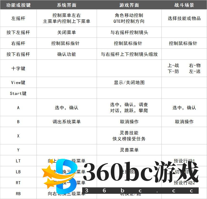 · 使用 左摇杆 控制角色移动 · 在QTE时,左/上/右 来应对战斗场景 · 通过 LB 选择目标 (责任编辑:蚂蚁团队) |