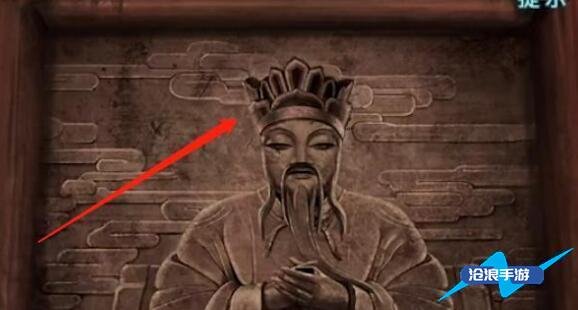 14、回到祠堂,给浮雕戴上石冠,再把石笏插浮雕的手上,这时会出现一个暗道。