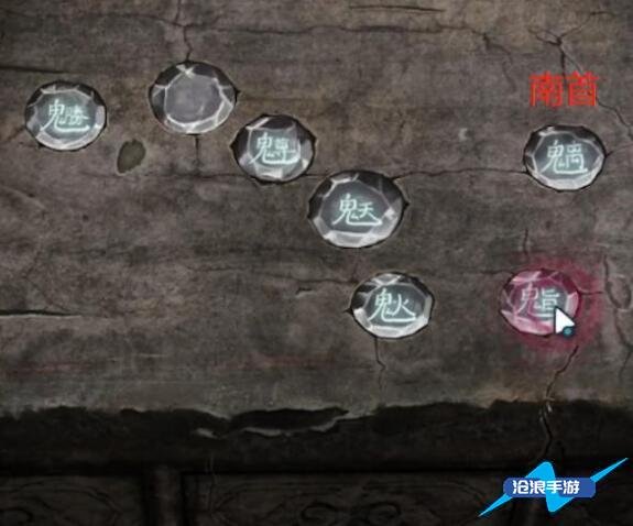 7、结南门自然是在北门的对立面,顺序应该是反过来,南门首位填“魑”,剩下字的顺序按照第二页“魑”开始的几个大字顺序填就行(注意倒数第二个是空的)。