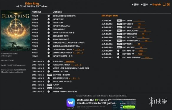 >>>《艾尔登法环》v1.02-v1.10三十五项修改器风灵月影版
