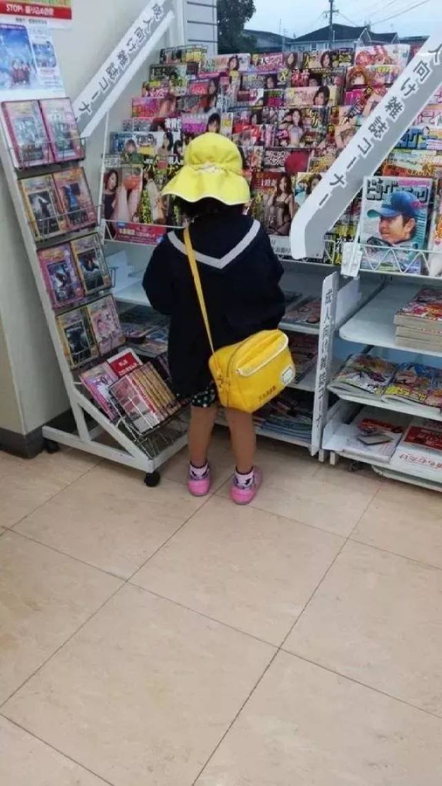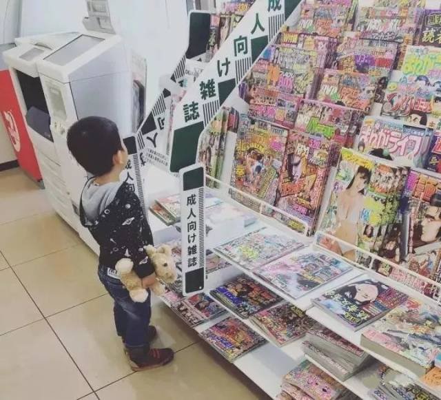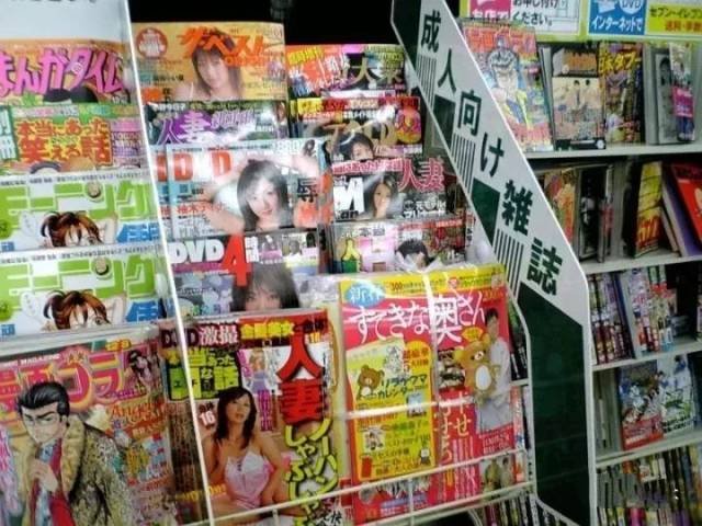 可以说在日本性这个话题是并不忌讳的,在任意的公共场合都能见到成人的东西。便利店的杂志区域有一片专门摆放成人杂志,日本男性也熬不避讳,就像要购买日常品一样站在书架前翻翻捡捡。