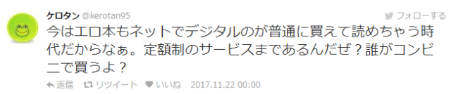 便利店行业人士表示,主要是高龄群体会在便利店购买成人杂志。一位在成人杂志出版社供职过的编辑也曾表示,成人杂志购买者年龄逐年上升,年轻人更习惯通过手机、电脑来获取所需成人信息。出版业不景气使得日本沿街个体书店纷纷倒闭,便利店成为了成人杂志相当重要的销售渠道。 但是随着2020年东京奥运会举办的时间到来,和日本女性群众对便利店摆放成人杂志的不满而导致便利店女性顾客的减少。