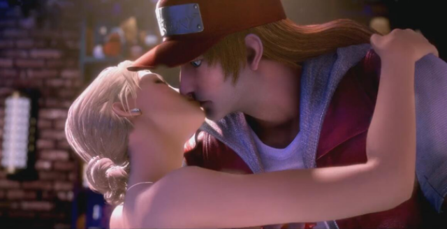 在《拳皇命运》的第三集当中,一位神秘女子——安琪莉娜出出场。此人在拳皇剧情中并没有交待,在动画中将其设定为杰斯的义女。安琪莉娜出现之后,无论是语言还是行为举止,都在对特瑞示好。 最让人惊讶的是,在特瑞与杰斯手下战斗的过程中,安琪莉娜竟然吻了特瑞!拜托,你们才认识几分钟啊,就这么草率的私定终生了?也不知道,这幕被玛丽看到了会怎么样?虽说玛丽对特瑞的感情比较模糊,但这么明目张胆的打啵啵,玛丽心里还是不好受吧!毕竟,女神都喜欢有挑战的事。