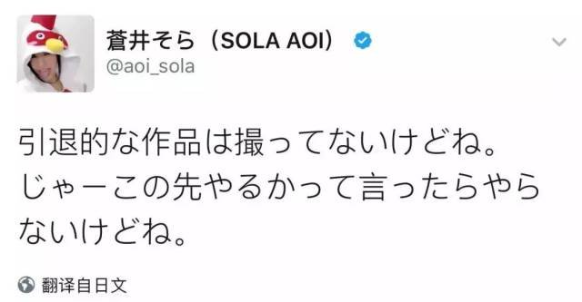 如今的已婚消息不禁让人联想到2017年年初宣布隐退时的场景。 已经五年多没有作品的苍井空明确表示不会再拍摄成人电影,正式退出这一行业。