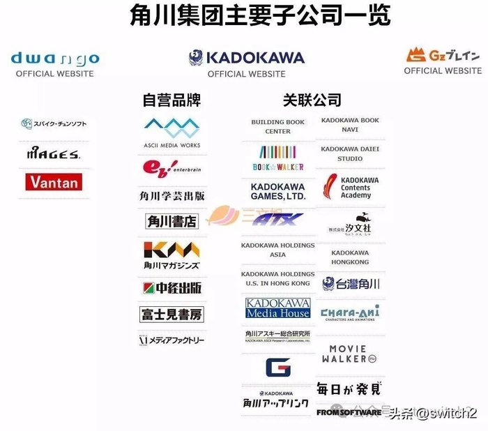株式会社KADOKAWA,简称角川,这家企业是日本出版业巨头。最初以书店图书出版业务起步,之后收购了大日本电影制片株式会社进入电影影视化制作,之后业务进一步扩展,涉及动画、涉及漫画、涉及周边制作、涉及ACG产业上下游。之后角川和IT企业DWANGO(多玩国)合并,实现了内容娱乐产业、利益最大化的跨媒体联动。旗下拥有50多家子公司,涵盖内容娱乐事业的各个方面。 目前包括日本B站之称的视频网站niconico,大名鼎鼎的游戏开发商FromSoftware,Spike Chunsoft以及Gotcha Gotcha Games等都是旗下的公司。《天诛》和《侍道》系列开发商Acquire之后也加入了角川。 角川集团在其发布的2024年第二季度财报中显示,旗下子公司正全力投入26款新游戏的开发工作。这其中包括了备受期待的20款主机游戏和6款移动平台游戏,涵盖了多个热门游戏系列和全新创意作品。