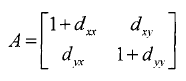 在实际场景中图像I和图像J可以代表前后两帧图像。对于图像特征点金字塔跟踪来说的目的是:对于前一帧的图像I上一点u(ux,uy),要在后一帧图像J上找到一点v(ux+dx,uy+dy)与之相匹配,即灰度值最接近。那么向量d=[dx,dy]就是图像在点u处的运动速度,也就是所说像素点u的光流。为了进一步说明向量d的含义。我们假设前一帧图像经历了仿射变换到后一帧图像,定义变换矩阵为 ![]() 其中四个参数dxx,dyy,dxy,dyx表征着图像中的仿射变形。所以光流计算的目的转变成找到向量d和变换矩阵A使得图像上一块区域内灰度差最小。