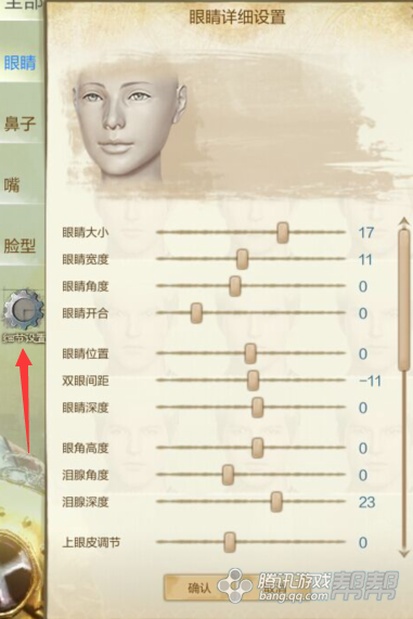 第三步 精雕细琢: 通过大致勾勒后,就可以对细节进行调整了; 细节的调整,有眼睛、鼻子、嘴、脸型,每个设置,都可以过精细到正负100点的数值调节,这里以眼睛为例子来介绍: 单击眼睛设置,然后,打开细节设置,可以看到,单单是一个眼睛 ,就有眼睛大小、眼睛宽度、眼睛角度、眼睛开合、眼睛位置等十几种设置可以微调,即使初始选择完全相同的两个人,通过精雕细琢后的微调也可以出现完全不同的效果。