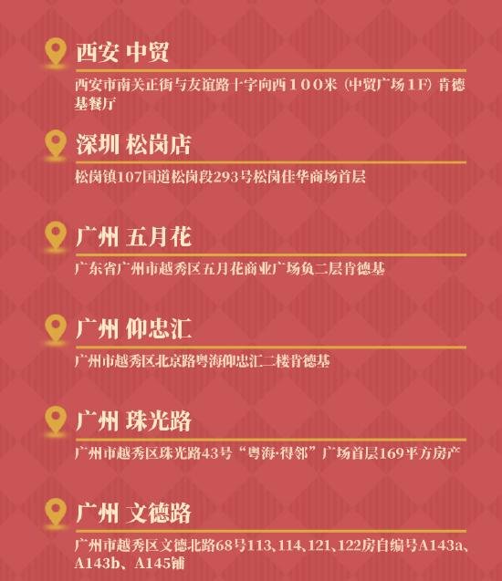 原神肯德基徽章 联动徽章需要购买套餐并跟店员兑换口令,门店口令是【异世相遇,尽享美味】; 在3月13日~3月14日期间,前往主题门店购买指定套餐,并跟店员对口令即可领取联动徽章一枚,徽章数量有限,先到先得,目前全国内自有16家主题门店,具体位置如下: