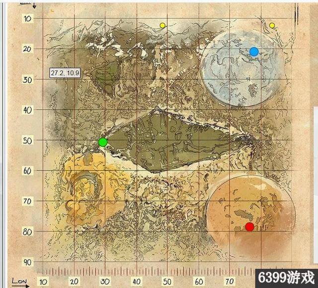 这张图3个黄点 应该是神器坐标(红 绿 蓝是方舟点 无视)