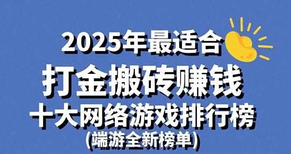 2025年最适合打金搬砖赚钱十大网络游戏排行榜(端游全新榜单):