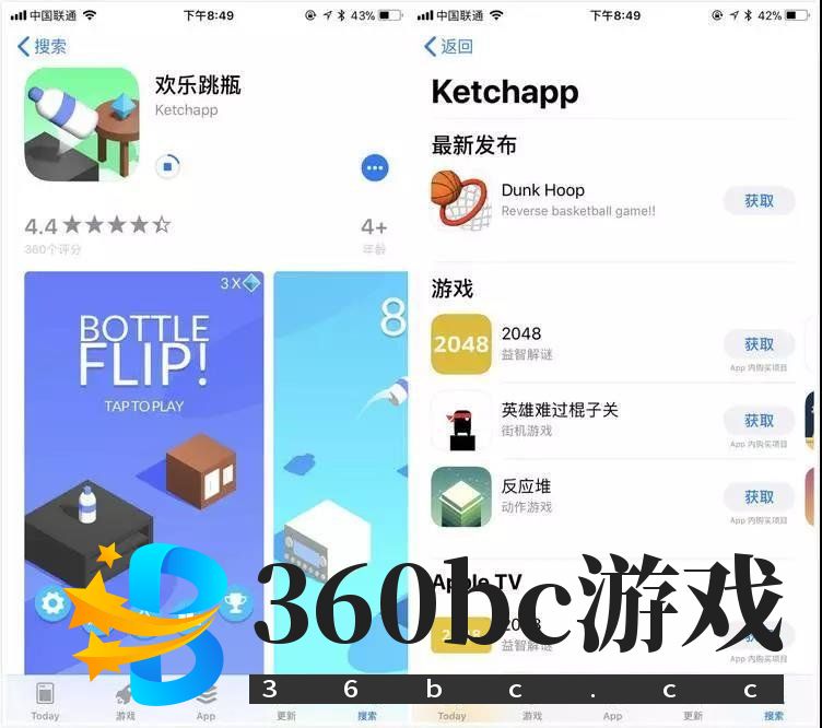 与微信不同的是,“欢乐跳瓶”中还有多达四种游戏模式。除了微信“跳一跳”提供的传统模式外,“欢乐跳瓶”还有保龄球模式、快速点击模式和堆叠模式,感兴趣的朋友可以下载玩一下。 不过,这都不重要,其实最重要的其实是这种魔性的游戏方式。而有趣的是,“欢乐跳瓶”背后的制作公司还有很多这种爆款魔性游戏….. 江湖上早有Ketchapp Games的传说 能让腾讯的微信团队“抄袭借鉴”,甚至是首发在官方游戏小程序上,想想其实是一件蛮“荣幸”的事。有趣的是,这家做了“欢乐跳瓶”,名为Ketchapp Games的公司,其实也是一家善于借鉴和包装游戏的公司…… 一些网友甚至将其称为“山寨公司+换皮大王”、“休闲山寨王”,为什么这么说呢? 这家名为Ketchapp Games的公司,特别喜欢制作轻度休闲游戏,而且他们不仅做到了休闲游戏的批量生产,而且达到了 85% 以上的爆款成功率。基本上,是出一个,爆一个,快的时候几天一款,款款魔性。 曾经风靡一时的《2048》和《反应堆》(叠叠乐),也出自这家公司之手。嗯,江湖上确实早有他们的传说,在手机游戏界,他们看起来就像是爆款病毒一样的存在。