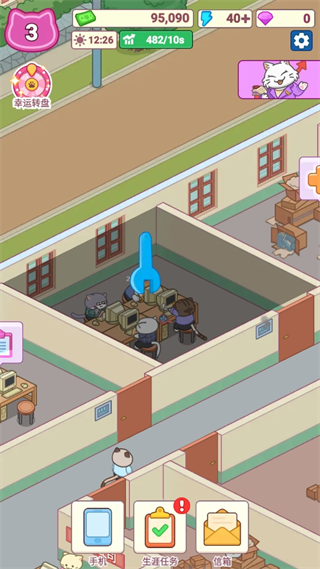 4、应对危机 在“劳动局突击检查”时,花费1000金币购买“舒适办公椅”避免遭遇罚款。 5、幸运抽奖 每天上线后,先参与幸运转盘抽奖,若幸运抽到“老板画饼券”,可让好友的产能减少30%,或获得“黄金砖块”直接兑换金币。