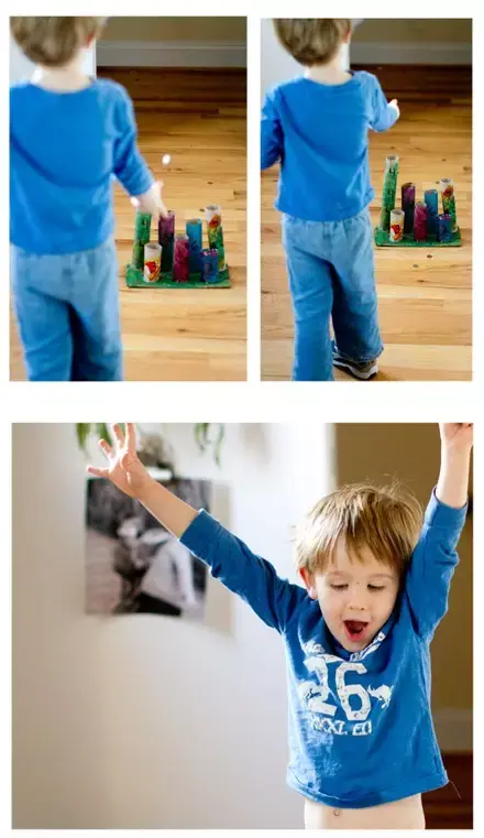 亲子小游戏, 让孩子在假期,忘掉手机, 让您和孩子互动起来! 为您的家庭时光增添一些小小的欢乐~ ![]() 1、吹纸杯 玩法介绍: 桌上倒扣着纸杯,每个孩子一个吸管,用吸管来吹纸杯,桌上的缝隙可以当作终点线,比比看,哪个小家伙儿吹的最远,最快~这也是锻炼孩子肺活量的健康游戏哟~ ![]() 2、愤怒的小鸟 玩法介绍: 麻麻们肯定深知电子产品对孩子们的危害,现在将手机里愤怒的小鸟游戏,搬到家中,让孩子体验现场感的游戏氛围,很是过瘾哟~用废弃的纸杯或者奶粉罐如题依次摆好,家里的毛绒玩具当作小鸟子弹~开始你们的愤怒小鸟之旅吧~ ![]() ![]() 3、双人运球 玩法介绍: 两个人的腰部夹着一个气球,家庭分组进行,比比看哪个小组在一分钟内运送的球最多~ ![]() 4、投硬币游戏 玩法介绍: 用卫生纸芯像如图所示范的粘贴好,纸筒上标记好数字,小家伙拿着硬币按照家长所指的数字纸筒内投硬币,看谁投的最准 ![]() ![]() 5、室内排球: 玩法介绍: 客厅中央用绳子做分界线,孩子们用气球当作排球~玩法和规则与排球是一样哟 ![]() 6、纸箱空间 玩法介绍: 蜡笔+空纸箱=安静的游戏空间,可以尝试一下。 ![]() 7、纸箱滑梯 玩法介绍: 家里有楼梯的可以试下这个玩法,孩子们一定乐此不疲! ![]() 8、穿越障碍 玩法介绍: 找一个过道,左右两边贴一些纸条作为路障,孩子们需要身体不接触路障而顺利通过,充满刺激的小游戏,很适合家庭聚会哟。 ![]() ![]() 9、击球比赛 玩法介绍: 这个游戏适合多个孩子一起参加,注意要用脚去击球,很锻炼孩子们的身体协调能力 ![]() 10、套圈游戏 玩法介绍: 一次性纸盘+卫生纸芯,自制的游戏道具,一样乐趣多多。 ![]() 11、踩高跷 玩法介绍: 用吃完的铁盒罐头做个简单的DIY,踩在这样的道具上,和踩在地上有什么不同?让孩子们来告诉你吧! ![]() 12、手指创意 玩法介绍: 实在不知道怎么玩,就玩玩自己的手指吧,这可是发挥孩子们想像力和创造力的好机会。 ![]() 13、找瓶盖 玩法介绍: 家里不用的小瓶子,小盒子一定很多吧,把它们的瓶盖和瓶身分开,让孩子们自己去进行配对,很培养孩子的细心观察能力。 ![]() 14、大纸箱游乐场 玩法介绍: 将家里不用的大纸箱取出来,让小朋友自己来绘制一个游戏场,将小脑袋里想像的情景都实现出来,再把乐高小人或者小玩偶都拿来,在自己创造的游戏场里玩情景游戏,充满乐趣。 ![]() 15、画图案 玩法介绍: 打印出来一些具有相同图案的纸(可以是不同的圆,三角形或者任意形状),和孩子一起用不同的图案或者花纹去填充,思考+创造,非常推荐这个有创意的游戏。 ![]() 16、配对游戏 玩法介绍: 经典的记忆配对游戏,找一些废旧的颜色鲜艳的盒子。 选择大约6个不同的纯色,然后剪出2对颜色、大小相同的正方形或圆形。将它们全部倒扣在地板上,让孩子一个个翻开,寻找相同盒子上的图案进行配对,很考验小朋友的记忆力及观察力。 ![]() ![]() 17、家庭小剧场 玩法介绍: 找一块床单,diy成一个简单的小幕布,让孩子们带着他们的小手偶来进行绘声绘色的表演吧,要鼓励他们尽情想像来创造吧,其乐融融的家庭亲子时光,多美妙。 ![]() |