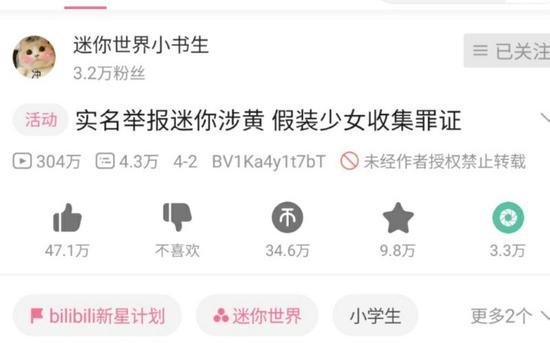 原标题:《迷你世界》色情诱导青少年,多次封禁仍频现涉黄信息 5岁的王小云(化名)在家中脱下衣服,对着移动设备拍照。2020年4月26日,王小云的家属告诉新京报记者,孩子说在玩《迷你世界》时,有人教她拍摄和发送隐私照片,并嘱咐“不能告诉妈妈”。 王小云提到的《迷你世界》,是一款针对青少年和儿童的沙盒游戏。去年,迷你世界》通过官方微信发布文章称,已有“上亿青少年用户”。 这款以“锻炼青少年三维空间思维,开发想象力和认知能力”为宣传语的游戏,因出现涉黄及色情诱导信息,频繁出现在公众视野。 4月7日,游戏方发文称进行整改。但近日,新京报记者调查发现,整改后的《迷你世界》仍没有阻断涉黄地图。 有些地图的留言板出现色情文字,还有些地图为迎合涉黄内容,搭配了窗、椅子等道具。 有人会在游戏中留下QQ、微信号,引诱玩家进入涉黄QQ群。群中,常常有网友向女性索要私密照片,并发布色情视频和动图。新京报记者以女性身份加入一个涉黄群时,一名网友直接索要裸照。 涉黄信息频现背后,暴露出未成年游戏平台在审核方面的漏洞。新京报记者发现,游戏中一些与涉黄信息相关的高频词,如“聊污”、“互看”等关键词,并没有纳入游戏敏感字系统。 即便游戏方称“已通过多重手段对有害信息筛查”,但游戏中的涉黄信息并未得到有效封禁,通过游戏被诱导至涉黄群的链条,也没被彻底斩断。 ![]() 4月24日,《迷你世界》一地图的大量留言板,记录着黄色小说情节。游戏截图 针对青少年的游戏频现涉黄信息 打开游戏,屏幕上出现了“卡卡”和“妮妮”两个角色,分别代表男性和女性。王小云输入出生日期后,选择了“妮妮”。 几个月前,王小云下载了《迷你世界》。这款高度自由的沙盒游戏,由深圳市迷你玩科技有限公司开发,于2015年12月26日发行。 第一个游戏任务,是采集木头。角色手持斧头,站在由无数方块组成的森林中,玩家可以通过伐木,制作工具箱。也可以播种耕地、采集矿石、建造房屋和城市。 王小云操控角色,在游戏里铺设了岩石,并在上面盖了几栋建筑。她在其中一栋建筑前,放置了一块留言板,并在上面写了“欢迎光临”。 一切就绪后,她把这张地图上传分享,其他玩家便可以通过联机,进入王小云创造的“世界”,与她在游戏中进行互动。 这种具备创造功能的游戏方式,为《迷你世界》吸引了大量青少年和儿童玩家。游戏官方微信号去年发布文章显示,这款游戏已有“上亿青少年用户”。 高三学生谢尘缘的弟弟、妹妹,也是《迷你世界》的忠实粉丝。弟弟已经上小学,妹妹刚上幼儿园,为了和他们一起玩游戏,今年3月份,谢尘缘下载了《迷你世界》。 玩了没多久,游戏中出现的一些画面,令谢尘缘愤怒又惊讶。一张地图里,十余个留言板上,写着与性爱有关的文字。评论区,也充斥着许多有关性暗示的内容。 ![]() 4月8日,一张名为“找对象”的地图中,制作者在一栋建筑内的12个留言板上,留下了性暗示文字,并搭配了床和椅子等道具。游戏截图 “绝大部分玩家都是未成年人,去投放这类信息,是绝对不可饶恕的。”4月2日,谢尘缘在视频网站发布视频,实名举报《迷你世界》涉黄。 4月7日,《迷你世界》在官方网站发布公告,宣布暂时关闭地图评论区,并表示已查封、处理数千个违规账号。 然而,新京报记者调查发现,游戏整改之后,游戏里的色情信息并未消除。4月8日,记者通过游戏的联机大厅,进入一个名为“找对象”的地图中,其中12个小告示牌上,均写有色情文字。 另一个地图的告示牌上,也出现了大量涉黄信息。记者了解到,这张地图创建于3月18日,目前下载量已达19.4万。创建者在介绍栏提示,“请不要举报”。 10岁的玩家张小明(化名)告诉新京报记者,班里很多同学都在玩这款游戏,便下载下来,他也常在联机界面看到一些“比较色情”的房间和评论,“刷新几次就能遇到”。 这些涉黄地图,大都通过留言板和信纸,以文字形式表现色情内容,有的会搭配场景,提供椅子、床等道具。 创建者大多会设置标牌,提醒玩家不要举报。有的作者,会将类似场景隐藏在封闭的空间内,玩家需要输入“保证不举报”的文字信息,才可传送进入。 多名涉黄地图的创建者提到,制作这样的地图,是为了在游戏中“涨粉”。为了吸引更多的玩家,他们会“承诺”说,如果粉丝达到一定数量,将会持续更新色情内容。 从游戏“涉黄房”诱导到涉黄群 一些青少年在游戏中浏览色情地图后,可以通过地图内的留言板,加入到涉黄QQ群组。在一些群主的诱导之下,青少年们面临暴露隐私的风险,很容易成为色情活动的受害者。 上述5岁女童的家长告诉新京报记者,有一天,孩子脱了衣服,对着移动设备拍摄。在母亲询问下,女童提到,《迷你世界》中有人教她拍摄、发送隐私照片,还嘱咐她“不能告诉妈妈”。 谢尘缘向记者提到,他此前在涉黄群潜伏时也发现,有成员会向他人索要私密照片,并发布到群里。新京报记者在一个相关的涉黄群发现,有群员发布疑似女童私密照。 ![]() 谢尘缘发布《实名举报迷你涉黄,假装少女收集罪证》的视频,在“B站”已有300万的播放量。网站截图 谢尘缘曾伪装成12岁的少女,通过《迷你世界》评论区的QQ号,加入一个涉黄群组。刚进群,一名网友便加他为好友,并要求他发裸照。“真的有恶心的人,在里面去诱骗未成年人。” 《迷你