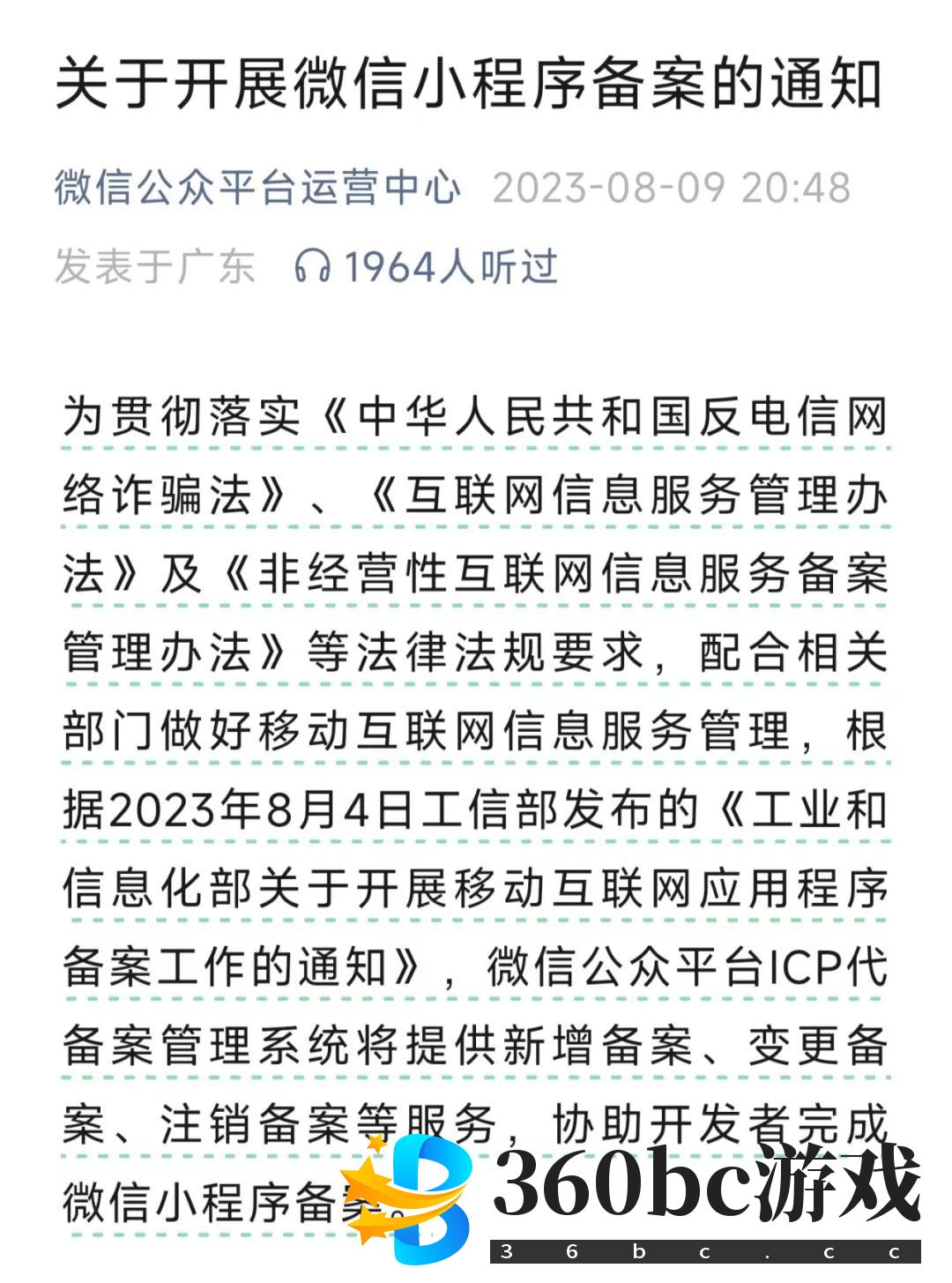图源微信公众平台运营中心公众号 更大的进展在8月末,广东新闻出版局下发了《进一步规范国产游戏小程序备案工作的通知》,进一步明确了小游戏监管的备案要求。通知要求,在广东省内依法注册登记的游戏小程序运营机构需要向广东省新闻出版局申请备案管理,做好游戏小程序新上线备案工作,已上线的游戏小程序应于一年内补办备案手续。 总的来说,广东省率先出台的备案制度对小游戏行业释放了良性信号,明确的备案制度有利于小游戏合法合规发展,减少各方风险。随着监管部门介入, 小游戏市场有望朝着更规范、更健康的方向稳步发展,激活便捷技术与第九艺术交融的经济活力。 在合规的土壤里,玩家期待的小游戏之“重”,不仅来自体量,更来自质量。 本文来自微信公众号“刺猬公社”(ID:ciweigongshe),作者:刺猬公社编辑部,文:星晖,编:陈梅希,36氪经授权发布。 (责任编辑:蚂蚁团队) |