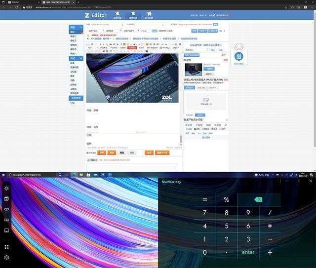可以看到,在主屏幕上,图片可以被更大比例的显示出来,因此可以在处理图片时减少放大、缩小的频次。而在副屏上,所有常用工具都可以按照自己喜好映射为单个按键,整体效率提升的同时,体验也好了不少。 此外,华硕灵耀X双屏Pro的这块副屏还支持触控笔操控,像AutoDesk SketchBook这样的绘画工具,铺开之后完全可以将副屏变成“调色盘”,此时,整个电脑就变成了一间画室,既能够摆放工具,又能够轻松完成绘画,这种体验是传统单屏笔记本所无法赋予的。 不过笔者个人觉得如果华硕能给虚拟控制台加入一些触觉震动反馈,来模拟一下真实的按键或旋钮效果,这就更赞了。 日常应用:期待更多可能 除了创意设计之类的应用之外,华硕灵耀X双屏Pro的这块副屏还可以满足一些日常应用的需求。 很多游戏玩家都经历过这样的事情:游戏到了某个地方突然打不过去,或者遇到了难以解决的谜题,此时不少玩家都会选择上网查攻略。如果是传统游戏本的话,你往往需要去切屏或者掏出手机/平板等其它设备去查询。而华硕灵耀X双屏Pro会怎样呢?