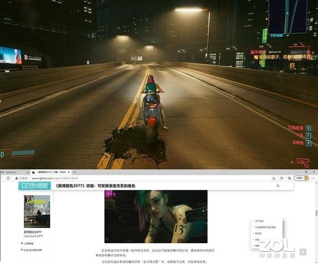 正如上方截图所示,笔者在游玩《赛博朋克2077》时,可以同时在副屏打开游戏攻略,遇到不会的地方可以直接查询,使用非常方便,省时省力。 除此之外,其实华硕灵耀X双屏Pro的这块副屏还有很多日常应用可以契合,比如多文档编辑、写代码、炒股等等。而且华硕灵耀X双屏Pro的主屏和副屏并不是完全割裂使用,尤其是双4K分辨率的配置,使得二者在内容显示方面更加丰富、更加细腻。 ·高性能配置Hold住4K游戏体验 华硕灵耀X双屏Pro拥有出色的硬件性能,虽然它更多的是面向专业用户打造,但如果不拿来玩游戏无疑是浪费了这么好的配置。而且11代酷睿i9-11900H+RTX 3080独显Hold住4K游戏也没有压力。