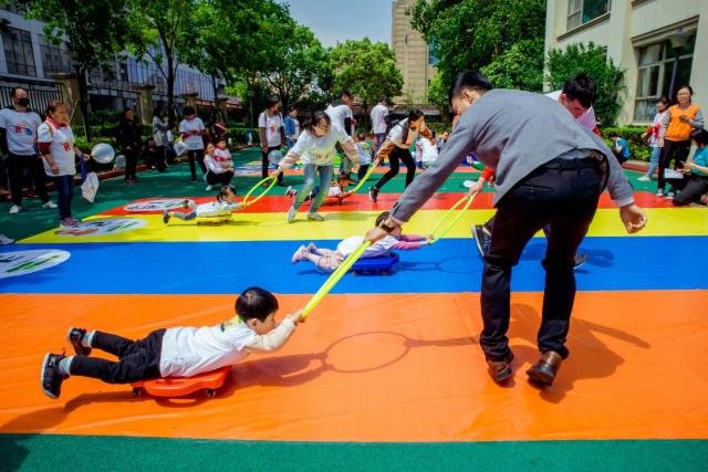 亲子运动会 亲子游戏不仅有益于亲子之间的感情交流,密切亲子关系,促进儿童的健康发展,而且对于儿童的实物游戏和伙伴游戏也具有重要的促进和影响作用。 这个亲子园运动会的游戏火了,好玩易操作又有趣,快来看看吧! 游戏一:拔河比赛(家长间) 拔河比赛不管在哪一场运动会比赛中都不会过时,热烈欢腾有激情。 开始啦! 嘿呦嘿呦,加油加油! ![]() 游戏二:毛毛虫比赛(家长间) 游戏规则:4人一组,家长坐在地上,坐一竖排,后面一位家长把脚放在前面一个腿上,保证不落地。在前进的过程中,若有家长脚落地,需从起点重新出发。用时最短的获胜。 ![]() 游戏三:两人三足(亲子合作) 游戏玩法:妈妈用带子将两人靠近的两条腿扎紧(必须在膝盖以下扎紧),此时两人三足走向终点,谁最先到达终点谁胜。 ![]() 游戏四:背小猪(亲子合作) 游戏玩法:家长背着小朋友,从起点爬到终点,中途如果有小朋友落地,要从终点重新开始,用时最短者获胜。 ![]() 游戏五:开飞机(亲子合作) 游戏玩法:孩子趴在地上,家长抬起小朋友的双脚,小朋友需要用到手部力量支撑向前。用时最短者获胜。 ![]() 游戏六:小鸟快飞(亲子合作) 游戏规则:小朋友趴在滑板车上手拿圆圈,家长拉着圆圈向前走。中途小朋友掉下滑板车需重新从起点出发。用时最短者获胜。 ![]() 游戏七:滚轮胎(幼儿独立完成) 游戏玩法:小朋友独立完成。在规定的赛道上滚轮胎,用时最短者获胜。 ![]() 游戏八:推小车运球(幼儿独立完成) 游戏规则:小朋友独立完成。推着小车从起点出发运小球,每次运一个。在规定的时间里运球最多者获胜。 ![]() 游戏九:过小河(幼儿独立完成) 游戏规则:小朋友独立完成。每个小朋友两个梅花桩,从起点出发,交替前行,用时最短者获胜。 ![]() 亲子运动会,既满足了幼儿依恋父母的情感需要,又能使家长了解孩子在集体生活中的一些情况。同时是进一步密切教师与家长的关系,实行家园同步教育的好形式。通过亲子运动会的互动,加强亲子间的关系,让孩子在快乐中成长。 ![]() 奖牌准备好啦,快和爸爸妈妈一起努力吧! 这样的亲子运动会你参加过了吗? 举报/反馈 |