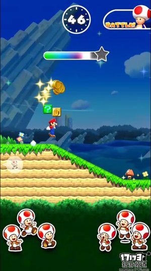 手游《超级马里奥跑酷》延续了《超级马里奥》兄弟近几代作品之中的画面,虽然游戏仍旧是采用2D横屏的跑酷玩法,但是人物的动作设计中的转头、摆手、翻滚等动作细节均将游戏画面从2D平面强行拉伸成为3D式的画面。而游戏在场景及物件上的设计同样也是延续了《超级马里奥》中的所有物件,基本来说本作在画面上是彻底将《马里奥兄弟》从掌机、主机平台搬运到了移动平台上。