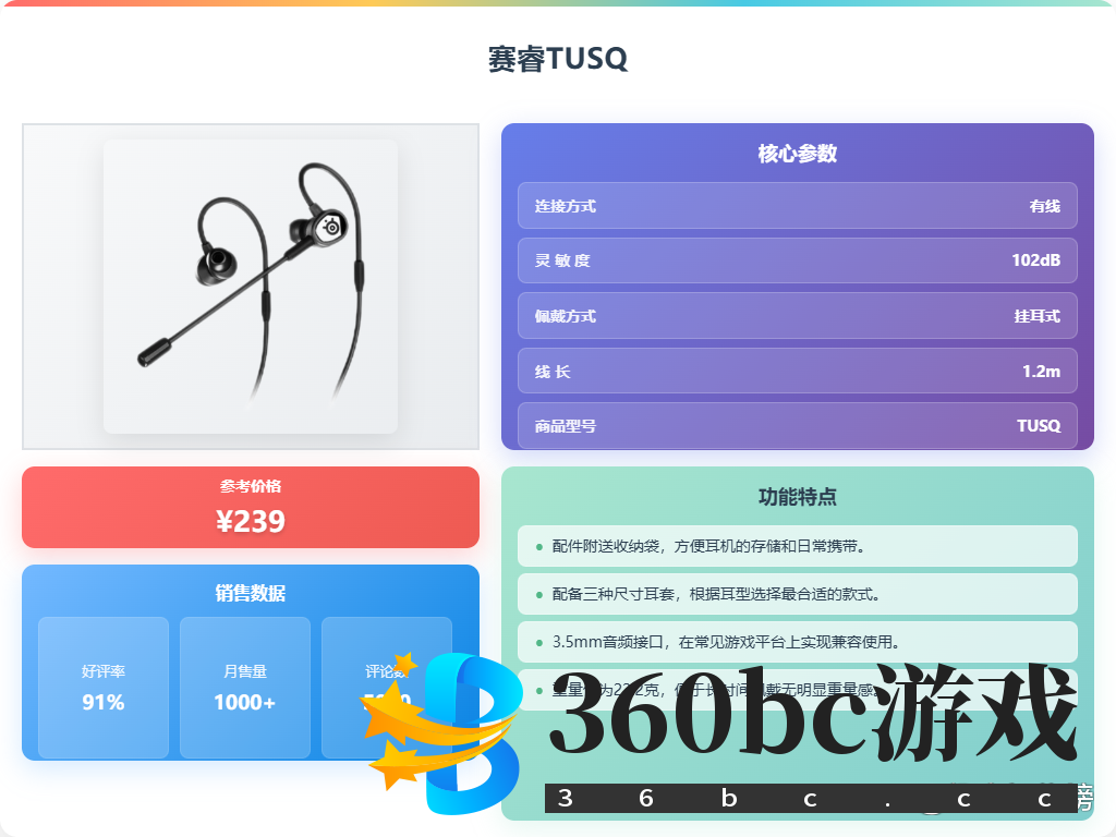 玩电竞游戏,好的装备那可是提升游戏体验的关键。尤其是耳机,直接关系到你能否听清敌人的脚步,准确判断方位。市面上游戏耳机那么多,质量参差不齐,到底哪些值得入手,是不是挑花了眼?这次就给大家整理了一份“电竞游戏耳机排行榜前十名:精选高品质”的清单,希望能帮大家理清思路,找到真正适合自己的那一款。至于这些耳机质量怎么样,好不好用,看完你就心里有数啦。 ![]() 那么,到底哪些耳机能上榜,它们又各自有什么特点呢?别急,精挑细选之后,我总结了10款在音质、佩戴舒适度、麦克风效果等方面表现都不错的型号。如果你也想知道哪款耳机更能让你在游戏中如虎添翼,获得更沉浸式的体验,不妨继续往下看,或许就能找到你的心仪之选。 热销款:雷蛇黑鲨V2 X (京东参考价:349) 雷蛇旋风黑鲨V2X这款耳机,不得不说,它这个Razer™ TriForce 50mm 驱动单元确实给力,高中低音分得很清楚,听起来层次感很强,玩游戏的时候,声音细节都能听得很明白。而且用的是USB有线连接,插上就能用,挺方便的。 ![]() 这个Razer™ HyperClear 灵晰降噪麦克风也值得说说,收音清晰,降噪效果还行,不过有人觉得声音偏小,得凑近点才行。另外,它的7.1 环绕声定位感不错,听声辨位挺准的,玩FPS游戏应该能占点优势。 ![]() 佩戴舒适度方面,这个柔软透气记忆棉耳罩还算舒服,能减少热量积聚,长时间戴着也不会觉得太闷。不过也有人反映耳罩有点夹耳朵,可能需要适应一下。整体来说,这个重量控制得可以,比较轻便。 ![]() 雷蛇(Razer)旋风黑鲨V2 X USB 有线头戴式电竞游戏耳机耳麦 被动降噪 CSGO吃鸡耳机 适配三角洲行动 ¥349 京东月销量1000好评率93%无理由退换京东配送 购买 热销款:CHERRY H1 (京东参考价:499) 这款CHERRY H1游戏耳机,首先吸引我的就是它那60mm的大尺寸驱动单元,用它来听游戏里的声音,感觉低音特别震撼,中高音又很清晰,空间感也很强,玩游戏的时候能更沉浸,而且听歌音质也很棒,不会糊成一团。 ![]() 它还配了两个可拆卸麦克风,一个休闲用,语音质量很清晰;另一个PRO麦克风,在嘈杂环境里也能过滤噪音,保证人声纯净,这个心形麦克风收音也很精准。对于喜欢组队开黑的朋友来说,这个设计简直太贴心了! ![]() 再说它的佩戴,耳罩是柔软的记忆棉,包裹性很强,戴着很舒服,减少了漏音,长时间玩游戏也不会觉得耳朵难受。铝合金框架也相当结实耐用,线控操作也很方便,可以快速调节音量,还有麦克风静音等功能,细节考虑得很周到。 ![]() CHERRY樱桃 H1专业游戏耳机有线 听声辨位 头戴式耳机fps 可拆卸降噪麦克风 适配三角洲行动 ¥499 京东月销量200好评率97%无理由退换京东配送 购买 热销款:ROG 棱镜2无线头戴式游戏耳机 (京东参考价:1299) ROG棱镜2电竞耳机,它支持2.4 GHz无线、蓝牙和3.5mm有线三模连接,能灵活适配各种设备。特别搭载了SpeedNova无线技术,延迟低,连接稳,保证游戏体验不受干扰,对于追求操作流畅性的玩家来说,这点很关键。 ![]() 这款耳机采用了50mm镀钛振膜大尺寸发声单元,听声辩位更精准。同时还支持7.1环绕音效,能让你在游戏中清晰捕捉到声音的方位,大大提升沉浸感,尤其是在玩FPS类型游戏的时候,简直是物理外挂! ![]() 不得不说,ROG棱镜2的续航也很给力,官方数据是高达110小时,告别频繁充电的焦虑。而且它还配备了可拆卸的10mm超宽频吊杆麦克风,收音清晰,自带降噪,和队友开黑交流再也不怕听不清了! ![]() ¥60 ROG棱镜2 头戴式无线游戏耳机 三模连接 Speednova技术 轻量化 游戏电竞耳机环绕7.1音效 3.5mm暗夜黑 ¥1299 京东月销量1000好评率97%无理由退换京东配送 购买 热销款:雷柏VH850 (京东参考价:229) 雷柏VH850这款耳机,连接方式挺多样,蓝牙5.3、2.4GHz无线和3.5mm有线,想怎么连就怎么连。物理双音腔结构,听声辨位更准了,玩游戏的时候,能更清晰地听到敌人的脚步声,反应更快。 ![]() 石墨烯复合膜的50mm钕磁发声单元,解析度确实不错,功率也够大,游戏音效震撼。而且这个全指向降噪麦克风,可以360°调节,还能拆卸,跟队友交流的时候,声音清晰多了,再也不怕被噪音干扰了。 ![]() 包耳式大耳罩,戴起来还算舒服,柔软材质也降低了环境噪音。耳机还有RGB背光,灯效炫酷。续航也给力,内置1200mAh电池,无线模式下能用挺久的。 ![]() 雷柏(Rapoo)VH850三模无线游戏耳机头戴式电竞三角洲FPS 明末渊虚之羽游戏专用听声辨位打瓦 多设备兼容 黑色 ¥229 京东月销量600好评率96%无理由退换京东配送 购买 热销款:外星人AW520H (京东参考价:699) 这款Alienware AW520H游戏耳机,音质体验确实不错,它支持杜比全景声,玩游戏的时候那个沉浸感一下就上来了,听声辨位也更准了。而且它还通过了Hi-Res认证,高解析音频带来的细节表现力,真的能让你听到更多游戏里的声音细节。 不得不说,这款耳机的AI智能降噪麦克风挺给力的,能有效过滤掉环境噪音,保证语音交流清晰。伸缩式设计也很方便,可以灵活调整到最佳的收音位置。这个设计对于喜欢和朋友开黑的玩家来说,简直不要太友好。 ![]() 佩戴舒适度方面,Alienware AW520H也做得挺到位。滑动式悬浮头梁加上加大的耳罩和记忆棉,戴起来很舒服,长时间玩游戏也不会有压迫感。还有那个AlienFX RGB灯效,可以通过软件定制个性化的灯光,确实能提升游戏氛围。 ![]() ¥1 外星人(Alienware)AW520H游戏耳机专业电竞适配三角洲行动有线智能降噪耳机杜比全景音RGB高端外设 白