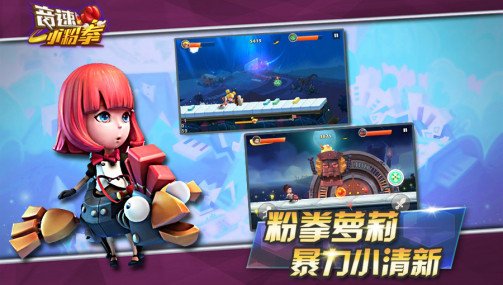 播报 编辑  音速小粉拳播报 编辑 怪力萌萝莉 米花  怪力萌萝莉 米花专属技能:升龙拳 通过跳跃,激发血脉中蕴含的神秘力量,打出无坚不破的升龙拳,击碎前方的一切阻碍! 特殊装备:拳套 机车小正太 扎克  机车小正太 扎克专属技能:蒸汽跳跃 借助蒸汽的力量,实现三段跳,即使是凶险的断崖或是锋利的地刺,都能轻松跃过! 专属装备:蒸汽枪炮 傲娇女汉子 云妮  傲娇女汉子 云妮专属技能:机械飞行 机械鸟打开双翼带着云妮飞行,只要还没落地,就可以随心暂停和继续。 特殊装备:机械鸟 播报 编辑  音速小粉拳 [1]既然号称最具碰撞感的动作跑酷,自然为玩家提供了与众不同的的战斗跑酷玩法。仿真物理引擎,辅以连击系统,带你找回了童年时代畅玩街机的暴爽打击感! 自建关卡洗劫你的好友  音速小粉拳 [1]粉拳萝莉 暴力小清新  音速小粉拳 [1]天赋搭配 花样跑酷王  音速小粉拳在游戏中,你不仅可以养成英雄,还能够养成丰富多样的小怪。共计二十种不同效果的天赋,闪电、火焰、冰冻、吸血,甚至还有点石成金这种逆天的技能。每个角色最多能够装备五种天赋,通过不同的天赋组合,可以打造出最强的跑酷之王! 播报 编辑 新手入门 1、实验室每天都有5次免费金币购买和1次免费钻石购买的机会,说不定就会出好东西,千万不要忘了使用哦。 2、城堡产出的资源非常珍贵,万万不能轻易被人掠夺,努力培养和布置怪物守卫吧!怪物被攻击后会损失寿命,寿命用尽就无法出战,记得及时治疗。 3、记得参与每日签到和月签到,签到次数越多,奖励越丰厚,千万不要中断哦。 4、每日中午11~13点,晚上17~19点都可以在每日活动中领取免费的体力汉堡,快和小伙伴一起来享有盛餐吧。 5、每次完成每日任务都会有丰厚奖励,完成指定个数的每日任务,还能获得额外奖励,非常超值。 6、每日前十次参与无尽之路玩法都会有多倍奖励,如果进入排行前列,还能获得钻石。 7、商店声望区独家出售各种高品质装备、珍稀宝箱和天赋、怪物碎片。排位战是获得声望的唯一途径,即使挑战失败也会有声望入账,大胆参与吧。 8、精英副本产出各种怪物碎片,想要打造不破之城,就要多多挑战精英副本哦。 9、掠夺战不仅能获得对方的城堡资源,还能获得奖杯。积攒足够奖杯即可获得对应的职阶,更有强大的属性加成,使得玩家如虎添翼。 10、副本中有时会出现颜色鲜艳的精英怪,打爆它会掉落好东西。 [2] 播报 编辑 今天Hao76小编给大家带来一款可爱风格的跑酷游戏!通常我们细分起来基本上就是两种:倾向于3D的,通常使用第三人称视角,将镜头固定在人物的屁股上,然后操作着他/她上下左右腾挪闪避。另一种则是2D横版卷轴式的跑酷,这一类在操作要求上比前者小很多,因为不需要上下左右,只需要跳跃就可以了。今天参荐的这款《音速小粉拳》属于后者的变种。 这款看起来很卡通,似乎有点低龄的游戏,属于新生的动作跑酷类游戏,也就是将一些动作元素融入到了跑酷游戏中。与以往简单的躲避障碍吃金币不同,这一次你有了反击的手段。游戏中在跳跃之余,你可以使用攻击按钮来挥拳攻击敌人。 这样游戏的感觉就完全不同了,游戏中一半的障碍物几乎都可以用拳头直接解决,而你可以在跑动中不断的无脑挥拳,只需要注意一些台阶断崖就可以了。以往跑酷瞪得发干的眼睛和冒汗的手心不见了,倒是多了一份无双的快感。 不过游戏当然不会太过无脑,随着关卡的进行,会出现不同位置的不同怪物,有的怪物需要躲避,而有的需要跳跃攻击,所以挑战性还是存在的。更不用说游戏中还有这BOSS关卡,一般来说就是一个不同于小兵的大型怪物,有着比较长的血条,需要比较多的击打才能杀死,而你不小心则还会被干掉,很有意思。 除此之外,游戏还有装备、天赋这种网游中常见的系统,让游戏的内容丰富了一些,也可以延长新鲜感的持续时间。毕竟玩跑酷刷装备,还是挺有趣的一件事。 另外,游戏中还可以在自家设定一个跑酷关卡,以此来防范其他玩家的入侵,这应该算是PVP内容了。不过目前来看,这一块功能比较简单,并且在初期也没有什么特别的必要。因为毕竟资源有限,完全没法摆出什么大阵势来,而且似乎这也是氪金点之一。 总的来说,《音速小粉拳》看起来很清新可爱,首先从视觉效果上就让人觉得舒服。其次新奇的玩法,和一些常见的增加黏性的系统,可以让人在闲暇的时候有个理由来跑几把。比起市面上千篇一律的手游来说,确实是一丝味道不错的新鲜空气,所以推荐大家都来猛吸几口 [3]。