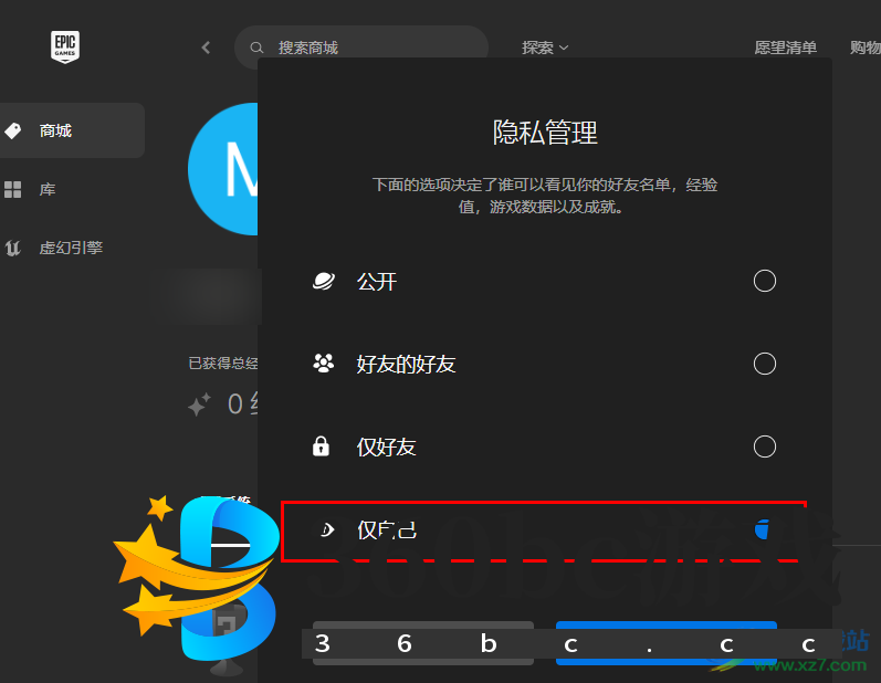 epic是很多小伙伴都在使用的一款游戏平台,它其中有着丰富的游戏资源可供我们选择,每隔一段时间还会有免费游戏可领取,在活动期间,还可以使用优惠券来购买游戏,深受广大用户的喜爱。在使用Epic的过程中,好友之间可以互相查看对方的游戏成就,如果我们不希望自己的成就被别人查看,我们可以进入成就页面,然后点击隐私管理选项,接着在管理页面中将设置更改为“仅自己”即可。有的小伙伴可能不清楚具体的操作方法,接下来小编就来和大家分享一下Epic隐藏自己的成就的方法。 ![]() 1、第一步,我们在电脑中找到Epic软件,点击打开该软件,然后在页面右上角打开自己的头像 ![]() 2、第二步,打开头像图标之后,我们在下拉列表中找到“我的成就”选项,点击打开该选项 ![]() 3、第三步,进入我的成就页面之后,我们在该页面右上角找到“隐私等级”选项,打开该选项右侧的“...”图标 ![]() 4、第四步,打开“...”图标之后,我们在下拉列表中找到“隐私管理”选项,点击打开该选项 ![]() 5、第五步,在隐私管理页面中,我们将隐私设置为“仅自己”,然后点击“保存”选项即可 ![]() 以上就是小编整理总结出的关于Epic隐藏自己的成就的方法,我们在Epic中打开自己的头像,再点击“我的成就”选项,在成就页面中,我们点击右上角的“...”图标,然后在下拉列表中点击“隐私管理”选项,最后在隐私管理页面中将设置更改为“仅自己”即可,感兴趣的小伙伴快去试试吧。 ![]() epic游戏平台(epic games)150.25 MB / v13.0.0 pc官方最新版 下载 |