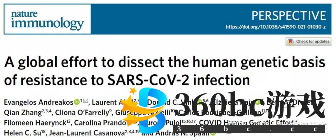 责编 | 翊竑 SARS-CoV-2感染从无症状感染患者到受到生命威胁的重症患者中表现出巨大的个体差异。自2019年12月人类首次描述这种疾病以来,我们对危及生命的COVID-19的病理生理学的认知取得了很大进展,但关于人类天生对SARS-CoV-2产生抵抗力的遗传和免疫学基础我们仍然知之甚少。在一些特定的家庭中,SARS-CoV-2感染的平均二次发病率可高达70%,据报道,在许多家庭中所有家庭成员都被感染了,但是配偶中却存在有一个没有被感染,这一现象表明了一些高度暴露的个体可能对这种病毒感染具有先天的抵抗力。 2021年10月19日,希腊雅典科学院生物医学研究基金会的Evangelos Andreakos 和美国纽约洛克菲勒大学的András N. Spaan 作为共同通讯作者(其中Evangelos Andreakos作为第一作者)在Nature Immunology 期刊发表题为 A global effort to dissect the human genetic basis of resistance to SARS-CoV-2 infection 的观点文章。文章通过回顾由基因决定的对两种传染病(结核病和新冠肺炎)严重后果的易感性的案例,讨论了与SARS-CoV-2感染的抵抗力直接相关的候选基因。