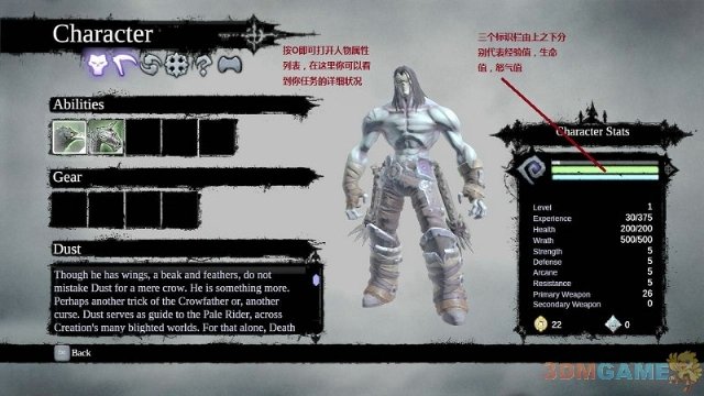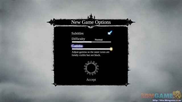 基础教程 对于一款动作类游戏而言的话,其基本的操控并不是过于复杂。但是由于本作有着大量的解密要素,所以从另一种程度上说也一定程度上加大了本作的游戏难度。这里还是简单说明一下基础的操作吧。 移动还是简单的WSAD模式。鼠标左右键则是进行相应的武器攻击,SPACE则是跳跃,O则是打开人物菜单进行各项属性的调整,ALT则是翻滚,E则是与特殊物件进行互动(如游戏中的ACTION提示)。在游戏新档建立之初,你将进行游戏难度和GAMMA值的调整;当然这些你也可以在游戏进程之中进行相应的选择说明。
