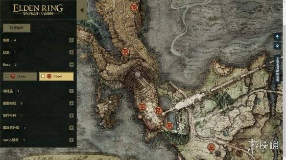 点此进入《艾尔登法环》互动地图 目前,你可以通过滚轮来放大/缩小地图画面、鼠标点击可拖动地图,在地图左侧可以选择要显示/隐藏的内容类型,可以分类显示各种装备、Boss、道具、地图碎片、npc、赐福点、法术祷告、强化材料的具体位置。而且左边栏也可以整体隐藏。