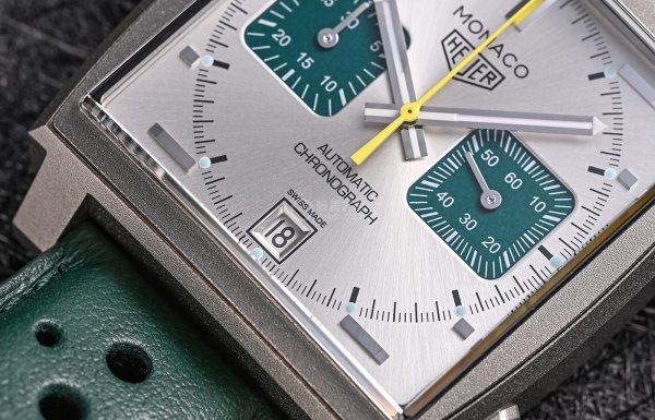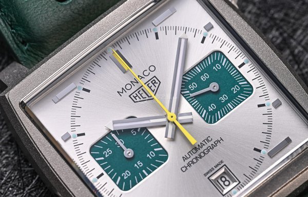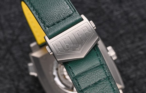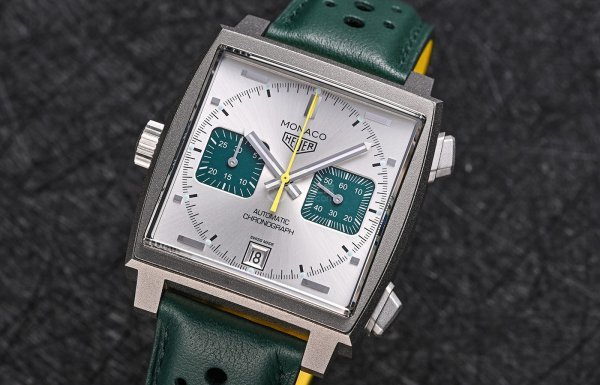 全新摩纳哥“竞速绿”计时码表继承了初代摩纳哥腕表的设计精髓:方形防水表壳、抢眼独到的惊艳配色、高辨识度计时表盘及各项赛车细节都在传达着其作为专业型赛车计时表的不凡之处。