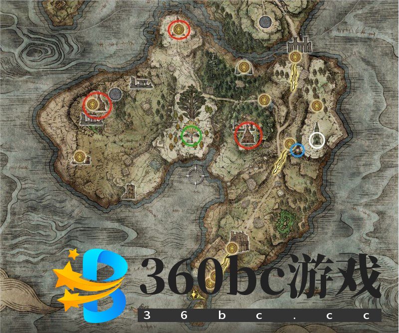 艾尔登法环地图工具在线版(包含全boss、地图碎片等20项资源) >>>>>>>点击进入使用方法:点击右边的选项进行使用 1、红圈是加原素瓶回复量的露滴道具,小小一个半岛居然有三个 2、绿圈是BOSS黄金树化身,打完2个合成露滴,一个效果是大减伤,一个是缓慢回血 3、蓝圈是100物防的龟壳盾,战技铁壁 4、右下角摩恩城出2级武器强化石