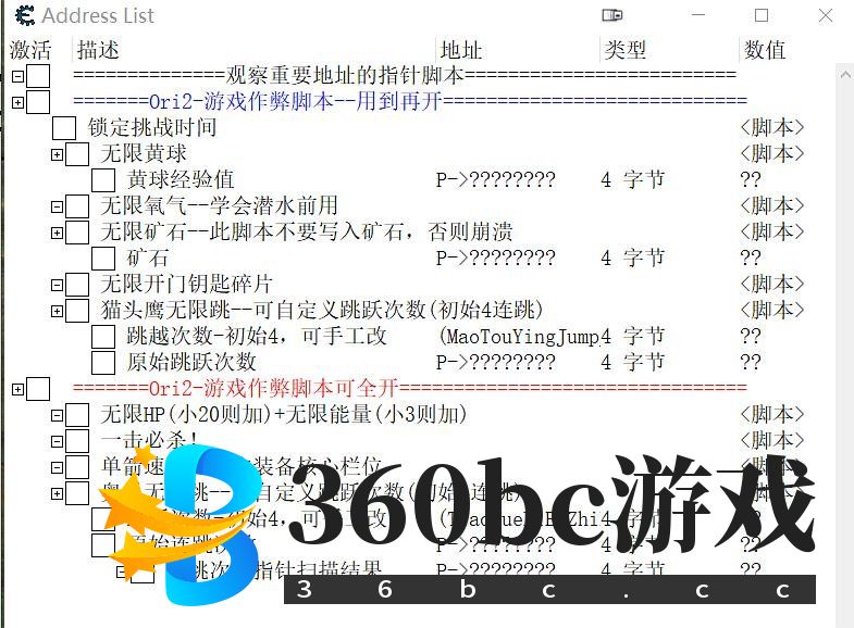奥日的HP初始是三个小圆球。每个圆球浮点值10,三个是30。受到一次伤害减5,所以2个半圆球就是25。根据这个能尽快搜到地址。 ----------------- 灭小boss,奥日一刀下去,敌HP-8 一击必杀:找个血厚的小怪,设置浮点数,未知,减小,不变,减小等等,然后在最后实在无法再减少的结果中,找初始值为整数的。比如某个小怪HP为32。 然后找写入地址的代码,再找攻击值。在脚本中将攻击值改为浮点9999. ------------------------------ 黄球, 金钱或者经验值: 按照界面上值找到2个浮点值,修改后发现在游戏中无效。之后发现这两个值改大后会逐渐变回实际的黄球值。 于是找什么写入该地址,找到一个不停写入的代码,分析代码,在该代码上一层函数的代码中,找到 GameAssembly.dll+901AB9 - 8B 40 30 - mov eax,[rax+30] 经观察和修改,证实[rax+30]存放的是实际的黄球值,为4字节而不是浮点值!!! 所以,直接搜4字节的黄球值就可以。 ----------------------------------------- 查找3级跳: 假设是4字节,初始找未知初始值。 然后配备3级跳、卸载3级跳,在回到游戏界面以后,分别查找变动值。最终,找到一个地址类似:2338B08B644,4字节。 当配备3级跳时候该值为2,不配备则为1(为0则只能跳1下,后来学会连跳,此值为1;配备上3级跳,则此值为2)。 查找写入该地址指令,得到: 执行次数多(一)7FFAFA4D99E1 - FF 8B 94000000 - dec [rbx+00000094] 此指令明显是减1。 执行次数少(二)7FFAFA4DA980 - 89 83 94000000 - mov [rbx+00000094],eax 经过分析,(一)是按下跳跃按钮后执行的指令;(二)是程序判断奥日落地后执行的指令,此指令将奥日的跳跃次数赋值给地址。(一直没有追到eax中的跳跃次数值到底是哪里来的!!!) 经过试验得知,注销掉(一),就可以实现无限次数的跳跃飞翔!!!!!! 经过试验得知,注销掉(二),游戏判断触地后写入2次跳跃值失效!!!!!! 而相对更自由的方式是想要玩家自定义设置一个跳跃次数,实现玩家控制跳跃次数。 实现上述目标,可以注销掉(二),然后设置一个自定义值,这样每跳跃一次减1一次,一直到结果为0。可以实现精确控制跳跃次数。 ----------------------------------------- 查找单箭速射: 假定为4字节,不断装配和卸载速射,回到游戏界面不断查找变化值。 得到类似:1C504108F4C,装配为0,不装配为FFFFFFFF。 查找写入指令:1个是装配的,一个是卸载的。 下面是装配的指令:主要是将地址写入0,其中,edx==0 GameAssembly.dll+143A1A6: 7FFAE1F9A1A0 - 40 53 - push rbx 7FFAE1F9A1A2 - 48 83 EC 20 - sub rsp,20 7FFAE1F9A1A6 - 89 51 1C - mov [rcx+1C],edx << 7FFAE1F9A1A9 - 48 8B D9 - mov rbx,rcx 7FFAE1F9A1AC - 33 D2 - xor edx,edx ---------------------------------------------------- 猫头鹰三级跳飞查找: 按照精灵3级跳的套路,猜想该值为4字节,初始为2,起跳后仍为2,在空中第二次跳,则变1,第三次跳则变0,落地则变回2。 按此套路查找到类似 205BAB83864 地址。 查找写入该地址指令。 一条是在不跳的时候频繁写入2。 一条是dec指令。 ---------------------------------------------------- 挑战小游戏时间锁定查找: 用CE将游戏速度降到最低,以方便查看当前时间值。 然后搜索单浮点时间值。锁定即可。 ![]() ct表中脚本实现无限HP,一击必杀,光箭速射不占栏位,无限跳跃、无限氧气、无限经验值、无限矿石、无限开门钥匙碎片,锁定挑战小游戏的时间等功能。 原则上所有脚本,也就是本ct表文件适用于游戏的任何版本,因为所有脚本都是aob注入(特征码)。 我的CE用CT修改表文件内容,包含在下面的: {{{{{{{{{{{{{{{{{{{{{{{{{{{{{{{{{{{{{{{{{{{{{{{{{{{{{{{{{{{{{{{{{{{{{{{{{{{{{ }}}}}}}}}}}}}}}}}}}}}}}}}}}}}}}}}}}}}}}}}}}}}}}}}}}}}}}}}}}}}}}}}}}}}}}}}}}}} 之中,如果想使用的话,将上述括号中间的文字内容拷贝到记事本,并将记事本保存后,将扩展名txt改为ct,即可载入ce使用。 ct表文件内容:注意不要拷贝{{{{{{ 和 }}}}}这2行!!! {{{{{{{{{{{{{{{{{{{{{{{{{{{{{{{{{{{{{{{{{{{{{{{{{{{{{{{{{{{{{{{{{{{{{{{{{{{{{ <?xml version="1.0" encoding="utf-8"?> <CheatTable CheatEngineTableVersion="42"> <CheatEntries> <CheatEntry> <ID>36</ID> <Description>"==============观察重要地址的指针脚本========================="</Description> <Options moAlwaysHideChildren="1" moManualExpandCollapse="1" moDeactivateChildrenAsWell="1"/> <GroupHeader>1</GroupHeader> <CheatEntries> <CheatEntry> <ID>41</ID> <Description>"查看HP"</Description> <Options moManualExpandCollapse="1"/> <VariableType>Auto Assembler Script</VariableType> <AssemblerScript>// Game Exe文件名 : oriandthewillofthewisps-pc.exe // Author : laoz // Exe 文件版本 : 2018.4.11.45208 // Module Version : // Script Date : 2022-05-14 // Created with : customAOBInjectionTemplates version: 1.3.9 [ENABLE] //注入点位置是频繁读取HP地址的指令。该指令是对xxxxxx进行查找什么改变这个地址操作得到的。 aobscanmodule(aob_ChaKanHP,GameAssembly.dll,8B 40 10 89 43 2C C6) registersymbol(aob_ChaKanHP) //这里ChaKanHP的意思是:查看HP alloc(newmem_ChaKanHP,256,GameAssembly.dll) label(return_ChaKanHP) //以下人造指针1 alloc(ChaKanHP_P,8) //人造指针8或4字节(64位需要8字节) registersymbol(ChaKanHP_P) // //以上人造指针1 //以下人造指针2 alloc(ChaKanHP_P_xx2,8) //人造指针,xx2可自己修改为HP或子弹等 registersymbol(ChaKanHP_P_xx2) // //以上人造指针2 newmem_ChaKanHP: //以下进行人造指针------------------------------------------------ mov [ChaKanHP_P],rax //以上进行人造指针------------------------------------------------ //下面放置新增代码 //------------------------------------------------------------------- //------------------------------------------------------------------- //