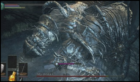 2、冷冽谷的波尔多一共有两个形态。在第一形态下,冷冽谷的波尔多的攻击相当单调,我们只要不断的朝boss的身子下面钻即可。