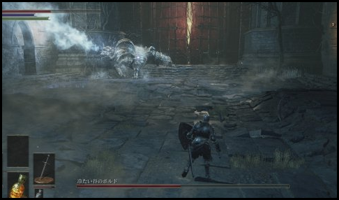3、第一形态的冷冽谷的波尔多会有三种攻击,一个是左手锤子的重砸,伤害高,但是范围小,易躲避。