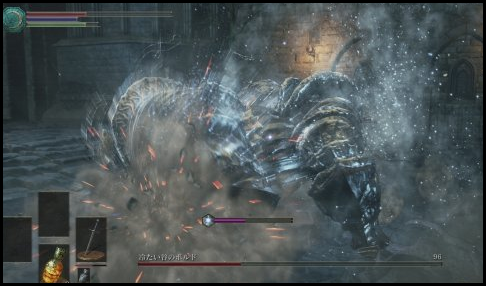 5、最后一招是右手重砸,速度非常快,而且在boss身体下面极易中招。