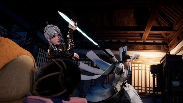 除了在定格的远景画面上发力,在演出上《仙剑奇侠传7》同样呈现了不错的质量,尽管大概是出于经费的掣肘绝大部分演出以站桩对话的形式进行,但做了即时演算动画的部分从导演视角到特效呈现都非常不错,甚至花样上也谈得上丰富多彩——我们在上图中可以看到小秋的回忆还学习了一把《嗜血代码》中的演出形式。