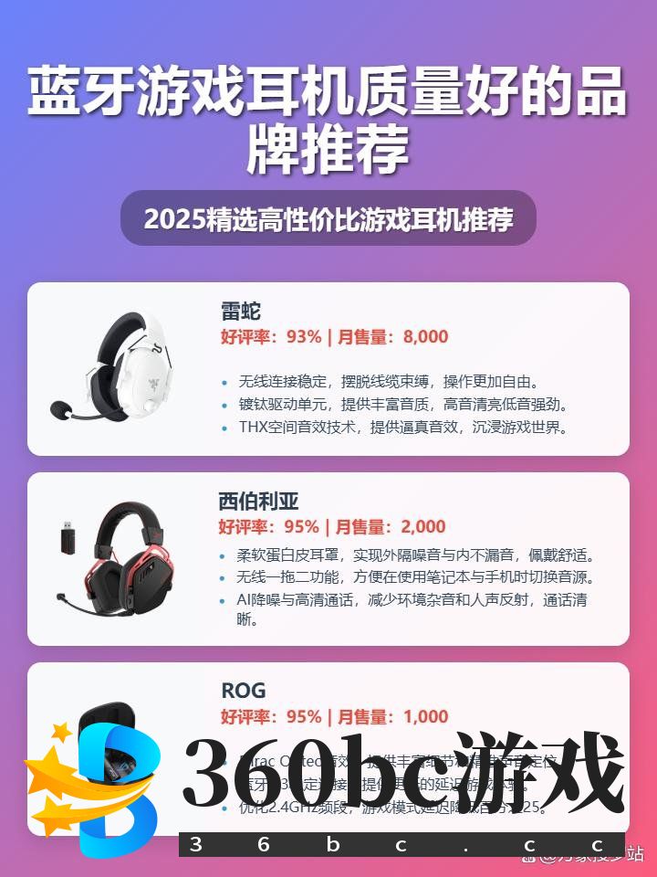 各位游戏爱好者们,面对市面上琳琅满目的蓝牙游戏耳机,你是否也在为“什么品牌的蓝牙游戏耳机好?”而感到困惑?音质、延迟、佩戴舒适度,还有麦克风效果,每一个环节都影响着我们的游戏体验。2025年,各大品牌又推出了哪些令人心动的新品?这些耳机的质量怎么样?是否真的好用又值得买呢?今天,我们就来一次彻底的摸底,对雷蛇、ROG、赛睿等品牌的8款热门蓝牙游戏耳机进行深度测评,希望能帮你找到最适合自己的那一款。 ![]() 在这次测评中,我们会抛开那些花哨的参数,从实际体验出发,聊聊这些耳机的佩戴感受、声音细节以及连接稳定性。当然,麦克风的降噪效果也是我们重点关注的,毕竟清晰的语音沟通是游戏获胜的关键。如果你也想知道哪款蓝牙游戏耳机才是你的本命装备,那就别错过接下来的内容。接下来,我们将深度剖析这8款耳机的优缺点,帮助你更好地做出选择。 热售款:雷蛇旋风黑鲨V2极速版 雷蛇K2这款耳机,佩戴起来挺舒服的,而且它那舒适柔软的隔音耳罩,能有效隔绝外界干扰,让你更专注于游戏。轻量化设计也加分,长时间戴着也不会觉得有负担。 ![]() 音质方面,雷蛇K2的表现也值得称赞。Razer Triforce 50毫米镀钛驱动单元,确实带来了更丰富的音质,高音清晰,低音也够劲。玩FPS游戏时,脚步声听得很清楚,有助于判断敌人的位置。 ![]() 这款耳机采用三模连接,支持2.4G和蓝牙无缝切换,而且有着不错的续航。Razer HyperClear灵晰技术宽频带麦克风,能清晰捕捉你的声音,和队友沟通更顺畅。 ![]() 雷蛇(Razer)旋风黑鲨V2极速版 无线蓝牙头戴式电竞游戏耳机耳麦 白色 被动降噪 三角洲EQ调节 CSGO 吃鸡 ¥779 京东月销量3000好评率94%无理由退换京东配送 购买 热售款:西伯利亚K03S 这款西伯利亚 K03S 游戏耳机,音质表现确实不赖!它采用50MM大尺寸单元,可以提供非常真实震撼的音质,无论是游戏中的爆炸声还是枪声,都能清晰呈现,给你带来身临其境的感觉。影院级的听觉体验,细节表现力很棒,沉浸感十足。 ![]() 不得不说,它的连接方式也太丰富了吧!支持2.4G无线、蓝牙5.3以及AUX 3.5mm有线,PC、手机、平板、Switch都能用,简直是多平台玩家的福音。而且,2.4G无线传输技术延迟确实低,玩游戏的时候音画同步,体验感直接拉满。 ![]() 续航方面也值得点赞!内置2000mAh大容量电池,蓝牙模式续航约196小时,2.4G模式也能达到约201小时,告别电量焦虑,可以尽情享受游戏乐趣。还有那个AI降噪麦克风,通话质量清晰,队友再也不用抱怨听不清了。 ![]() 西伯利亚(XIBERIA)K03S无线7.1版2.4G蓝牙游戏耳机头戴式手机低延迟电竞专用智显电脑耳机武士黑 ¥249 京东月销量700好评率97%无理由退换京东配送 购买 热售款:ROG降临TWS Speednova真无线 入耳式游戏耳机 ROG降临TWS这款耳机,电竞氛围直接拉满!Aura RGB灯效在耳机和充电盒上都有,信仰加成。而且它还支持蓝牙5.3和2.4GHz双模连接,特别是2.4GHz模式,延迟是真的低,玩游戏音画同步,感觉更沉浸了。 ![]() 这款耳机的主动降噪也值得一说,ANC自适应主动降噪技术能有效消除环境噪音,无论是游戏还是听歌,都能有个安静的环境。它还支持混合多点连接,能同时连两台设备,切换起来很方便。 ![]() 还有,它不仅仅是能连手机、电脑,PS4/5也支持,兼容性很广。续航也不错,单次能用11.5小时,配合充电盒总续航能到46小时。再加上骨传导传感器,语音通话更清晰,细节做的挺到位。 ![]() ROG降临TWS Speednova真无线入耳式 游戏耳机 蓝牙无线 游戏手机配件 运动耳机主动降噪 黑色 三角洲 ¥1299 京东月销量200好评率95%无理由退换京东配送 购买 热售款:CHERRY H3W CHERRY H3这款耳机,拥有2.4GHz和蓝牙双无线模式,PC、主机和移动设备都能用,适配性很广。它还配备物理快捷键,静音、音量调节、模式切换,操作起来相当便捷。 ![]() 不得不说,CHERRY H3的音质确实不错,这得益于它内置的53mm大单元。针对游戏做了专业调校,低音区的脚步声和枪声方向感都比较清晰,听声辨位更准了。 ![]() 续航方面,CHERRY H3也很给力,100小时的超长续航,告别频繁充电。而且铝合金框架让耳机更耐用,加上轻量化设计,长时间戴着也不会觉得很累。 ![]() ¥50 CHERRY樱桃 H3W无线专业游戏耳机耳麦 蓝牙电竞游戏耳机头戴式FPS CSGO ps5吃鸡耳机打瓦 适配三角洲行动 ¥699 京东月销量200好评率97%无理由退换京东配送 购买 热售款:罗技G435 罗技G435游戏耳机轻巧得很,长时间戴着玩游戏也不会觉得累!它还特别采用了LIGHTSPEED无线技术,连接稳定,延迟也控制得不错,玩游戏的时候声音反应够快。 ![]() 这款耳机还支持蓝牙,连手机也很方便。而且它的双波束成形麦克风设计挺给力,能有效减少环境噪音,语音通话更清晰。音质方面,它通过了Discord认证,还支持Dolby Atmos和Windows Sonic空间音效,听个响还是可以的。 ![]() 值得一提的是,这款耳机考虑到了环保,用了不少回收材料,也算是为环保出份力啦。而且它还有音量限制器,可以设置最高85dB的音量,对听力也是一种保护。 ![]() 罗技(G)435 无线头戴式游戏耳机 蓝牙虚拟环绕声 LOL吃鸡FPS听声辩位 送男友 黑色-适配三角洲 ¥299 京东月销量400好评率94%无理由退换京东配送 购买 热售款:外星人AW725H 外星人AW725H这耳机,连接方式是真的灵活,蓝牙、2.4GHz无线、3.5mm有线,想怎么连就怎么连,再也不用担心线不够长或者没电的尴尬情况了。不管是宅家还是出门,都能保证音频不掉线,这个必