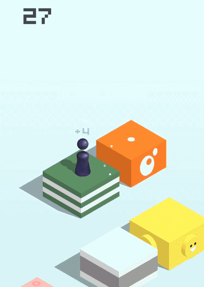 6、注意微调:当你跳到新的方块上的位置离中心较远的时候,需要注意及时调整跳到下一个方块上力度,假如你的距离一直偏离较多,那么离Game Over也就不远了。