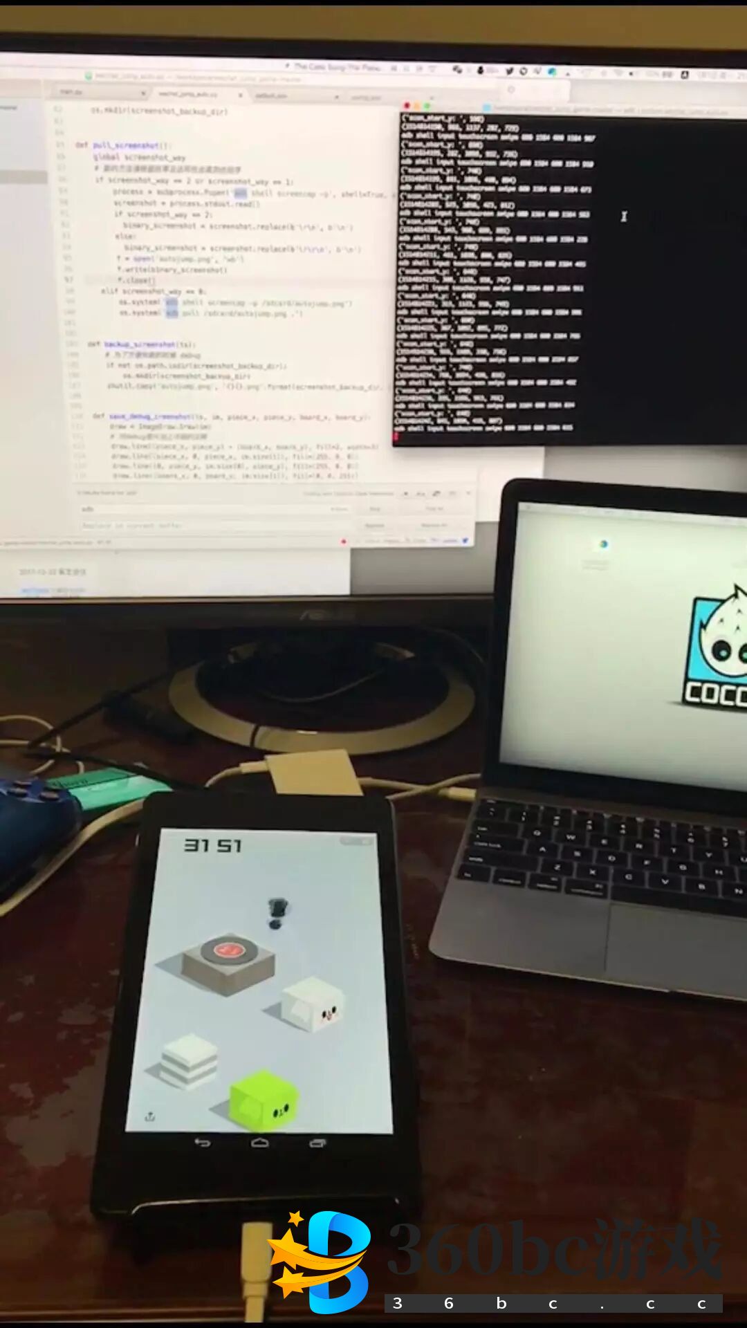 哎妹不禁有些佩服这些“大佬”了,这得刻苦钻研多少个日夜才能得出这些数据啊... 一山还比一山高,前有物理外挂,后就有 AI 图像识别、卷积技术实现。Cocos 引擎创始人王哲老师利用纯软件解法,用 adb shell screencap 截图后,对图像进行分析,然后用 adb shell input 指令来模拟触摸时间,运行结果如下: