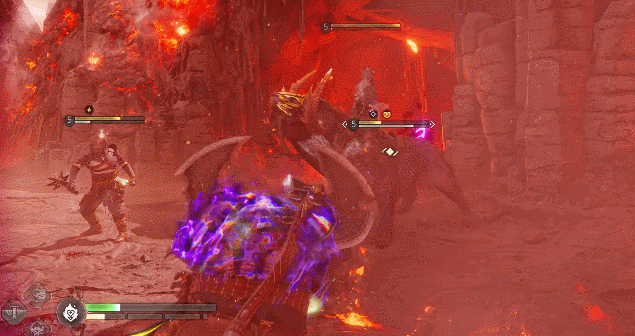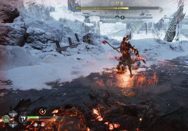 在长矛加入后,奎托斯和敌人的互动也变得更加丰富了。在游戏中,你会时不时遭遇冰盾或火盾的敌人,需要用火焰属性和冰属性的攻击达成破盾以造成后续伤害;而长矛则带来了新的“灰色”血条,需要利用穿刺属性攻击来达成破盾。