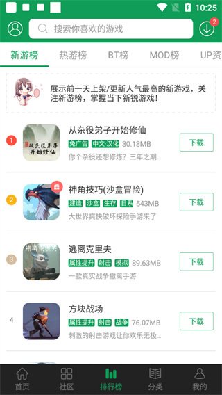 1、这里有着各种火爆的手游,让用户们可以任意的下载、娱乐,给用户非常棒的体验;