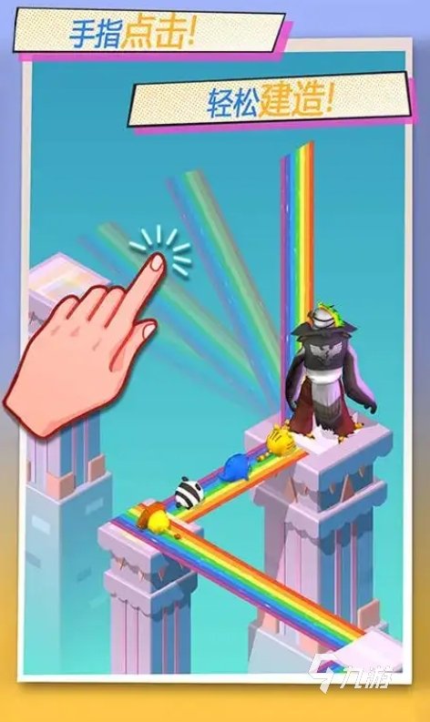 《跳一跳》延续了原版的风格,看着熟悉的界面和声音,瞬间回到了当年大家都在追求更高分数的时代。整个游戏设计很简洁,只需要点击屏幕,按照时间长短就能跳出不同距离。游戏过程还会遇到一些特殊的箱子,只要跳上去就能添加额外的分数,帮助玩家向着更高的分数去挑战。 2、《彩虹桥跳一跳》