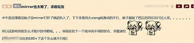 不少网友爆料,《Mirror》作为一款绅士游戏,立绘很出色,妹子也很大xiong,但是你他喵地把消消乐做那么难干什么! 许多网友裤子都脱了然后消消乐打不过人家,这还怎么进入美少女的私人世界!怎么和人家谈心?!