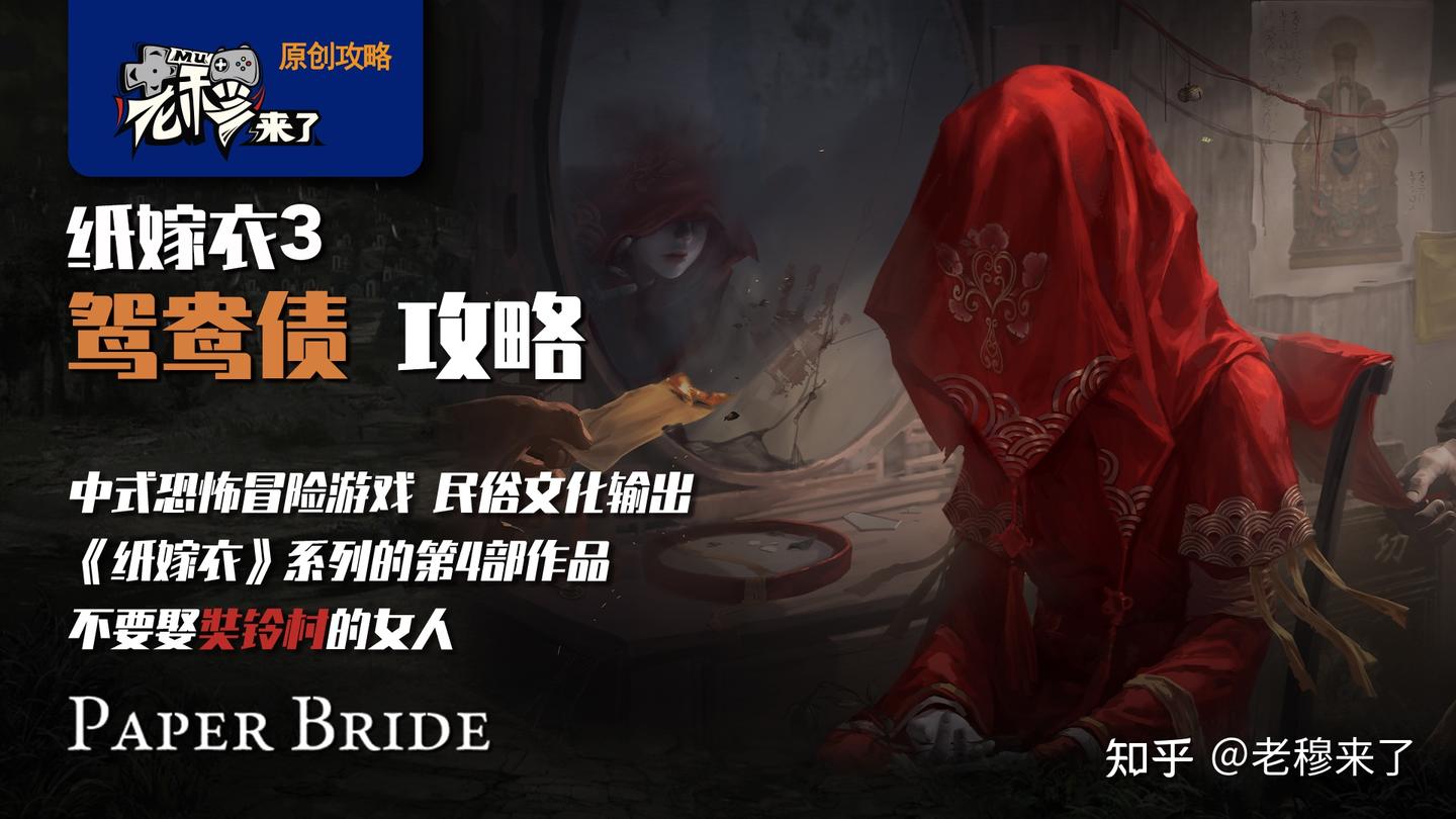 欢迎阅读老穆撰写的《纸嫁衣3鸳鸯债》图文攻略!有帮助的话请列位 关注收藏 ! 中式悬疑剧情解谜游戏,《纸嫁衣》系列的第4部作品。这次的故事发生在临近奘铃村的末水村。游戏...