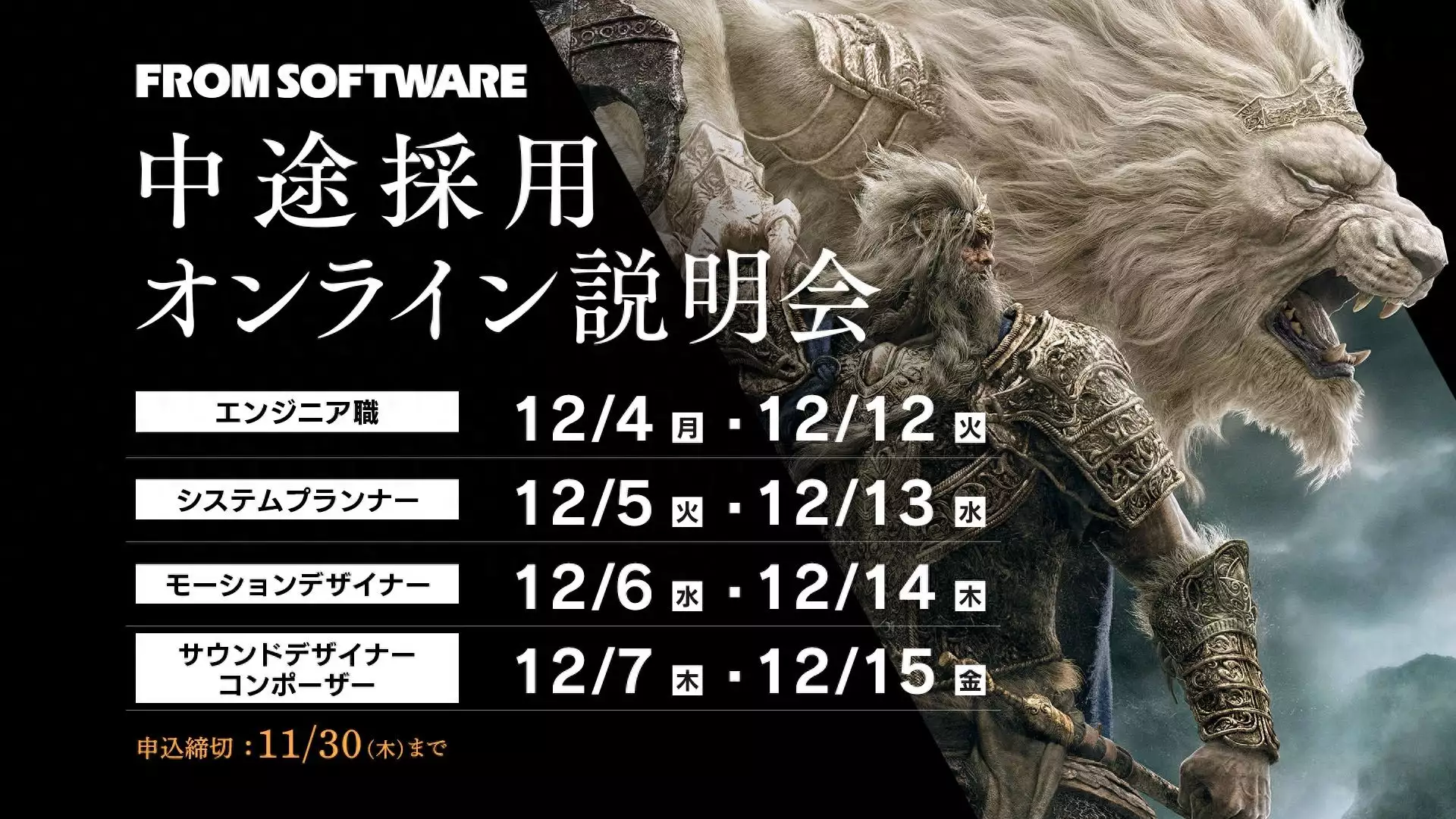 10月24日,FromSoftware宣布将举办经验丰富的游戏开发者职业中期招聘在线说明会,并已开始接受参与申请。本次说明会是为FromSoftware多个新项目做准备而举行的,除了FromSoftware公司的概要...