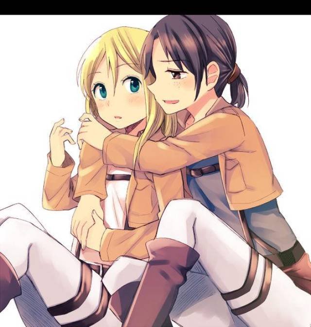 然后感觉获取重生,因为死前发誓再也不欺骗自己,就过着活在当下的生活,敢作敢为。在墙内进入训兵,遇到克里斯塔,发觉现在的克里斯塔和以前的自己很像,被她的纯真吸引,然后就单相思???尤妮尔起码你的思想年龄有70到80岁以上了,应该是达到看透人生的境界了吧,这是么轻易就有百合倾向真的好吗?